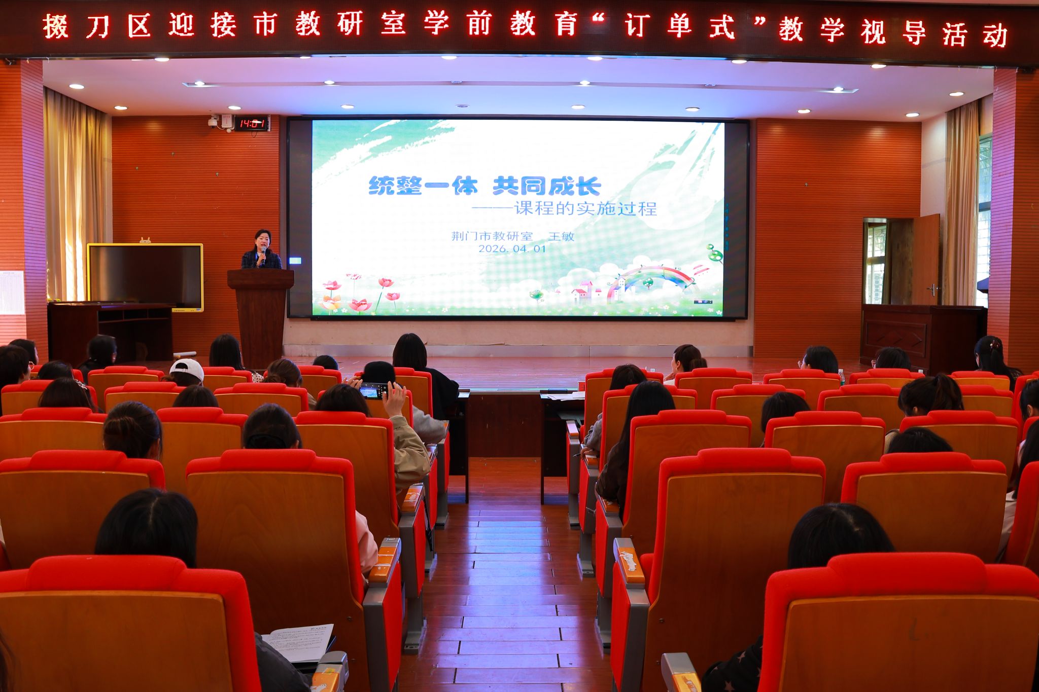4月1日,荆门市教研室学前教育“订单式”教学视导活动首站来到掇刀区,市教研室学前教育科科长王敏带领教研员团队亲临指导,来自全市各幼儿园的园长、骨干教师代表齐聚一堂,共同开启一场基于真实需求、聚焦实践问题的深度教研之旅。
