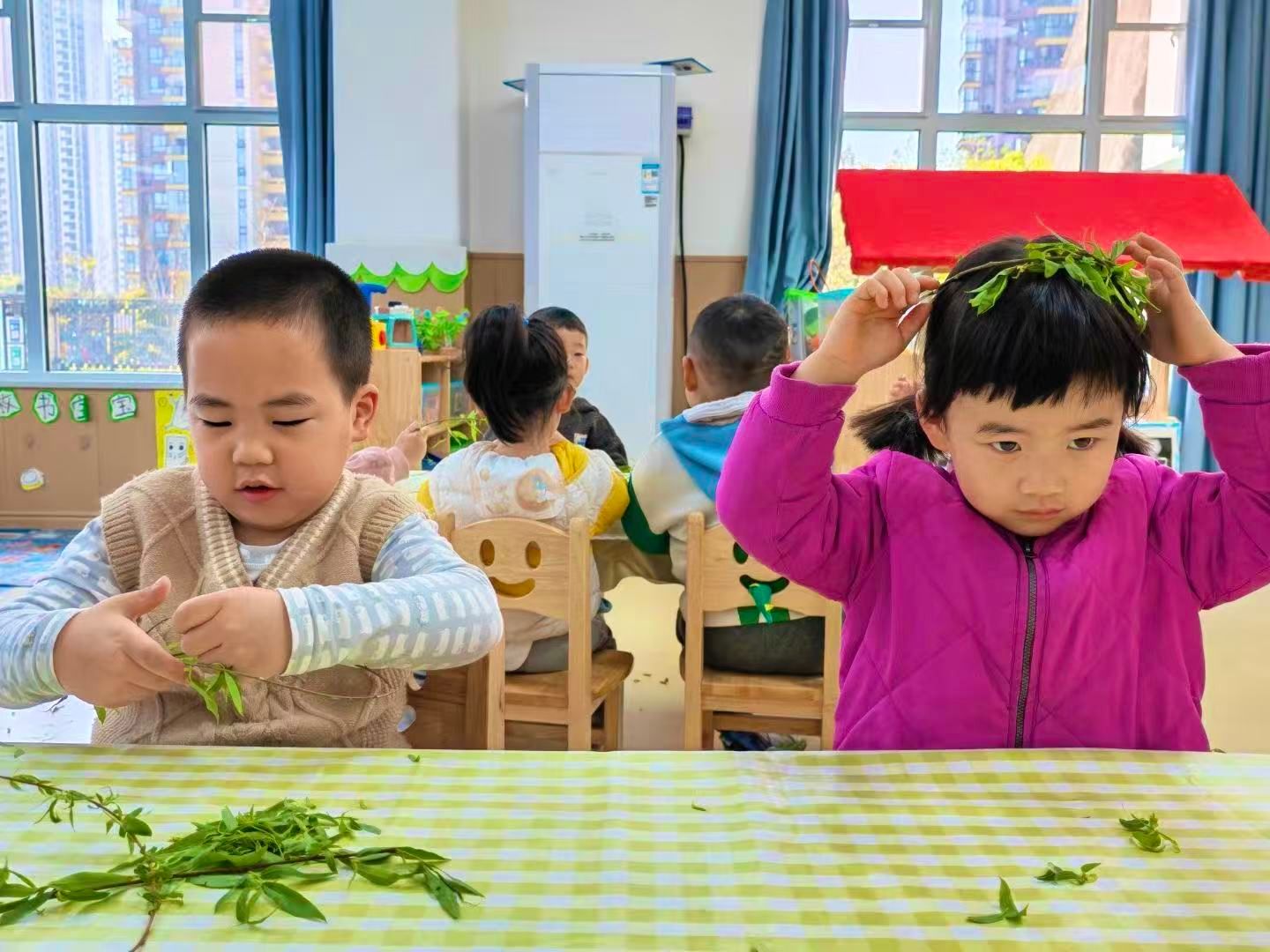 活动中,老师们先为孩子们讲解清明节插柳、食青团的民俗由来,带领孩子们开展趣味实践。孩子们亲手将嫩绿的柳枝制作柳帽互相佩戴,感受“插柳寄吉祥”的传统习俗。在制作青团环节,大家动手揉面、包馅,亲手做出软糯的青团,品尝春日美味,在动手体验中感受传统美食的魅力。
