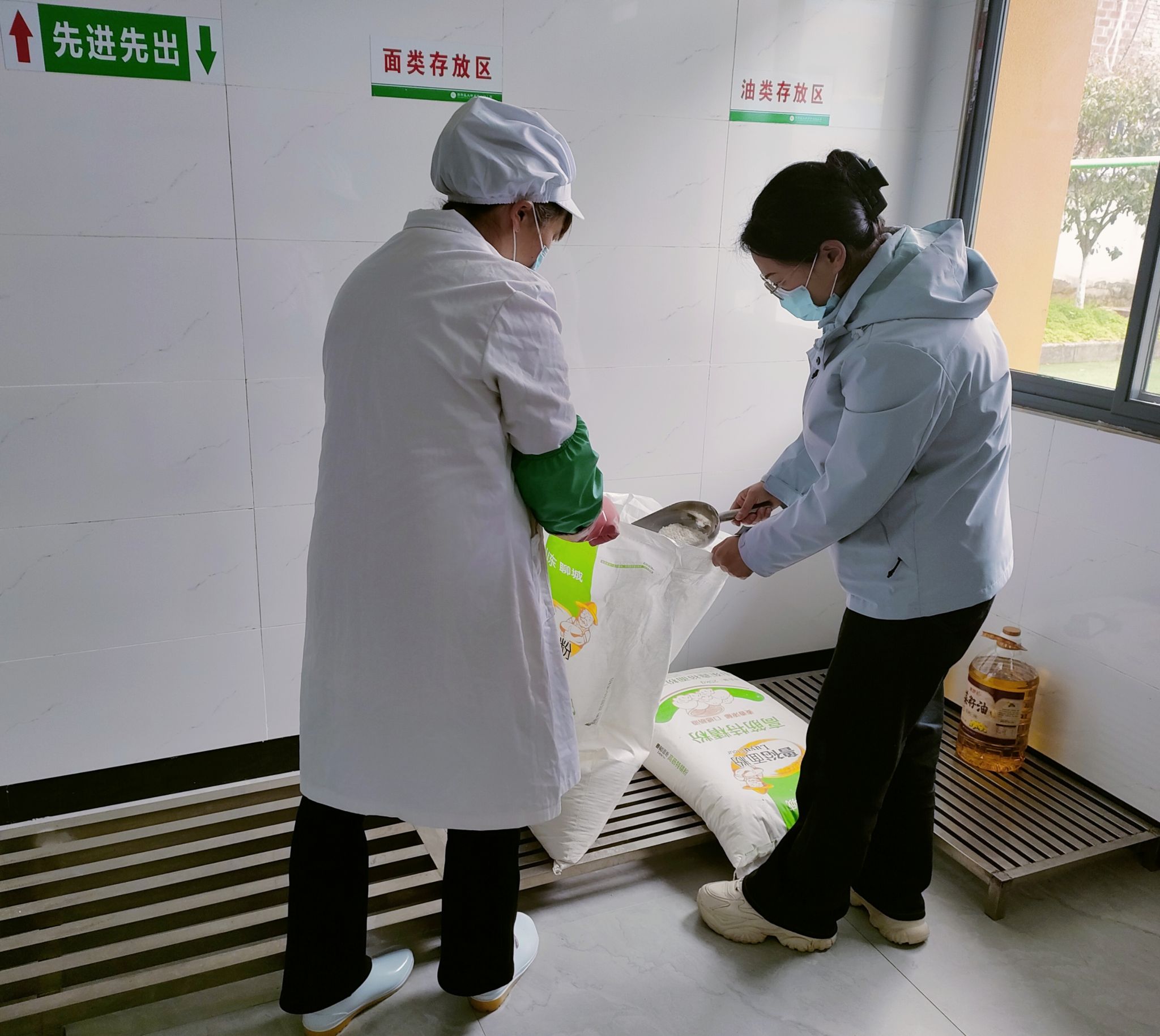 食堂后勤组首先来到食品仓库和冷藏区,重点核查了米、面、油及调味品的保质期与储存状况。针对清明天气特点,小组成员对所有易腐败的生鲜食材,如蔬菜、肉类、豆制品等,在离园前全部清退或进行处理,确保假期期间食堂冰箱“零库存”,从源头上杜绝食品腐败变质的风险。