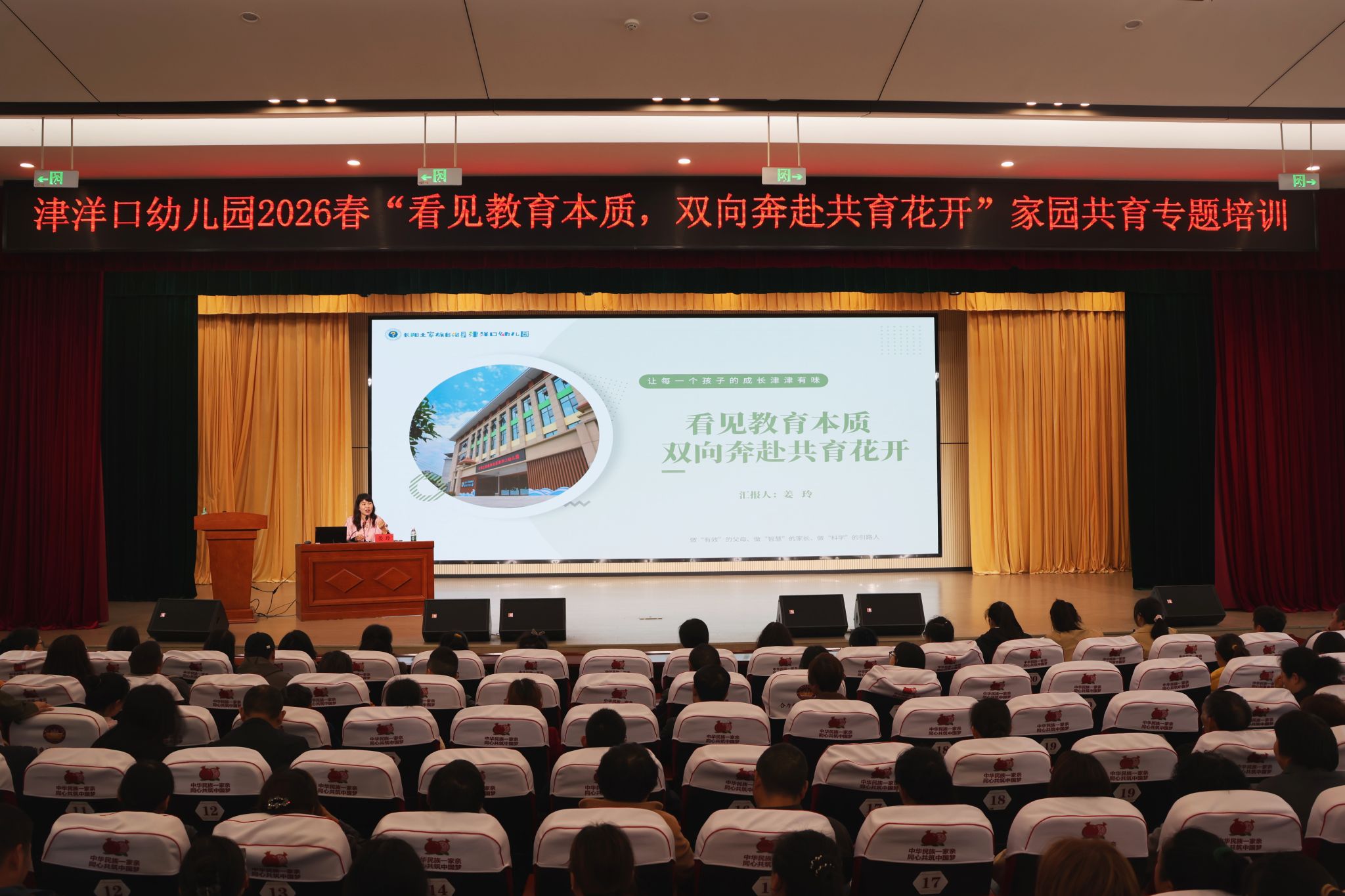 津洋口幼儿园党支部书记、园长姜玲围绕科学育儿与家园共育同家长倾心交流。她立足学前教育政策纲要,坚守科学奠基、摒弃“小学化”,依托“津津有味”园本课程,在一日生活中培育幼儿专注力、共情力、抗挫折力等终身受益的核心素养,打造专业精进、热爱幼教的师资队伍。在家园共育上,她以信任、尊重、包容、同心、守望为核心,倡导家园彼此理解、携手配合,用言传身教涵养孩子品格,以协同合力守护教育初心,让教育情怀被滋养、让成长之路有温暖。