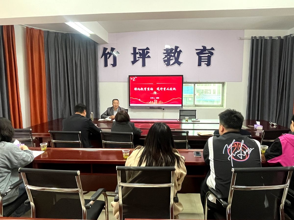 4月14日,竹山县竹坪乡中心学校会议室,退休教师张云朝为全乡青年教师带来一场新闻宣传培训课,以半生经验为笔,教“年轻教师”讲好教育故事。