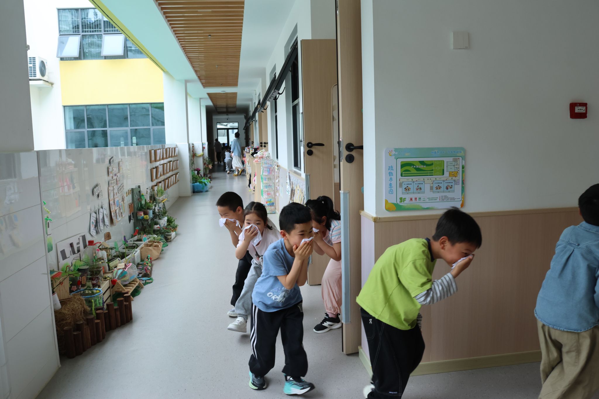 当日下午,随着警报声骤然响起,演练正式开始。各班教师迅速引导幼儿用湿毛巾捂住口鼻,弯腰低姿,沿既定疏散路线快速有序撤离至操场安全集结区域。全体师幼反应迅速、配合默契,全程紧张有序、无拥挤慌乱。到达安全集结区域后,各班教师立即清点人数并逐级上报,确保无一名幼儿遗漏。随后,全体教职工现场进行灭火器、消防栓实操演练,熟练掌握了初期火灾扑救技能,切实提升了应对突发火情的实战能力。