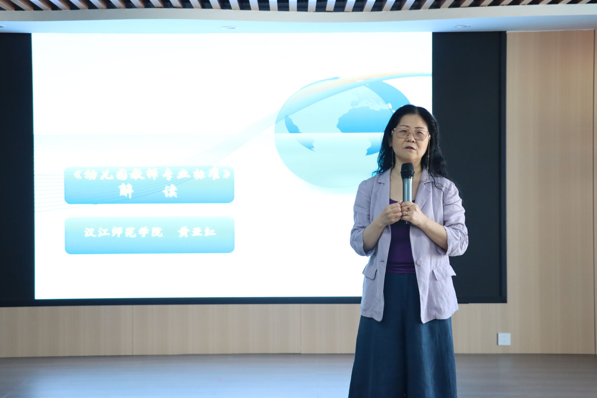 培训紧扣转岗教师岗位需求与教学痛点,采用“理论引领+实践赋能”的模式,精心设置贴合一线教学的核心课程。特邀汉江师范学院黄亚红副教授等资深专家、优秀园长及骨干教师倾力授课,课程涵盖《幼儿园教师专业标准》解读、家园共育实施路径、科学幼小衔接策略、幼儿园科学与数学领域活动设计、园本教研组织方法等内容,兼具理论深度与实操指导性,全方位助力教师实现从“转岗”到“专岗”的能力蜕变。