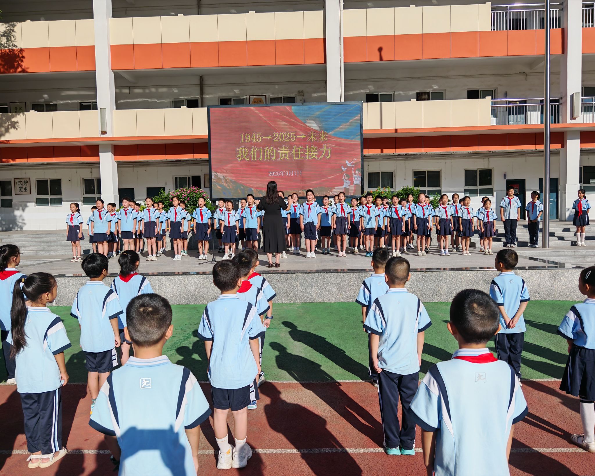 五年级同学带来的朗诵《勿忘国耻 强国有我》和五(4)班合唱的《歌唱祖国》,用铿锵之声与动人旋律,表达了新时代少年铭记历史、报效祖国的决心。学校党支部书记、校长石红丽在致辞中勉励全体师生将个人成长融入国家发展,书写无愧于时代的篇章。一年级新生代表张昊锐用稚嫩而坚定的声音,表达了对校园生活的向往,新教师代表江康进则许下了潜心育人的庄严承诺。