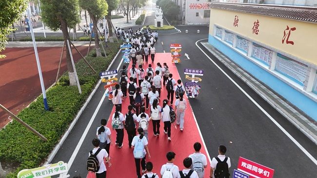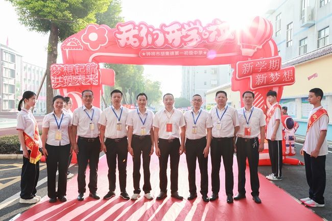 9月1日,胡集一中以一场简短而热烈的仪式迎接七年级新生。他们在阳光沐浴下踏上红毯,与校长、学长击掌相迎。红色拱门上“我们开学啦”的标语与两侧“梦想起航,共筑未来”“新学期,新梦想”的宣言交相辉映。