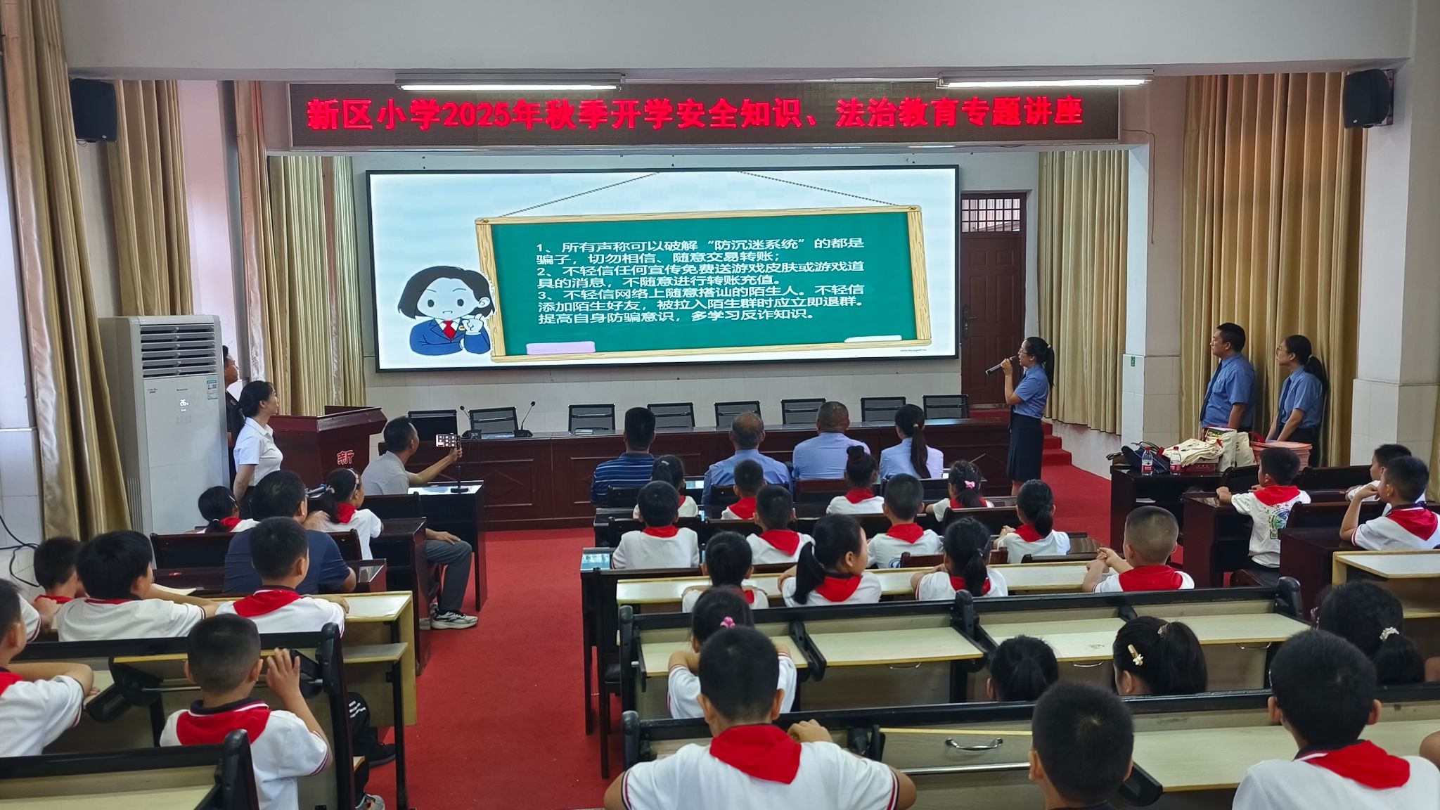 为切实增强学生法治观念与安全防范意识,引导学生学会用法律武器保护自身权益,9月1日下午,郧阳区检察院检委会委员、新区小学法治副校长李光海带领该院“阳光未来”法治宣讲团走进郧阳区新区小学,为全体学生送上开学“法治第一课”,城关镇派出所两位民警受学校邀请参与授课。