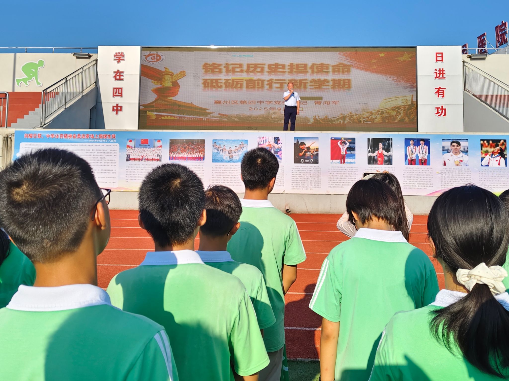 在充满希望的新学期伊始,襄州区第四中学全体师生齐聚操场,隆重举行 “铭记历史担使命,砥砺前行新学期” 秋季开学主题升旗仪式,同时纪念中国人民抗日战争暨世界反法西斯战争胜利80周年。伴随着雄壮的《义勇军进行曲》,五星红旗冉冉升起,全体师生肃立行注目礼,嘹亮的歌声中满含对祖国的崇敬与热爱,也拉开了新学期的崭新序幕。
