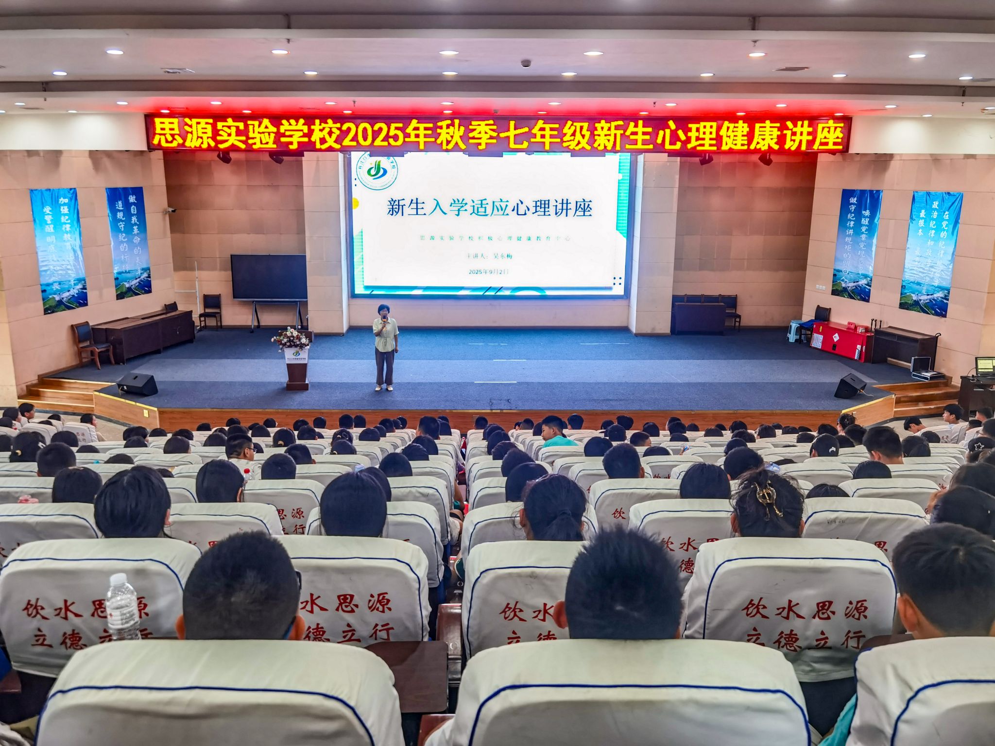 9月2日下午,丹江口市思源实验学校报告厅内氛围热烈,一场专为七年级新生打造的入学适应心理讲座在此举行。该校积极心理健康教育中心主办此次活动,吴东梅老师担任主讲,全体七年级新生参与其中,在互动与学习中收获了适应新学段的“心理锦囊”,为顺利过渡初中生活奠定基础。