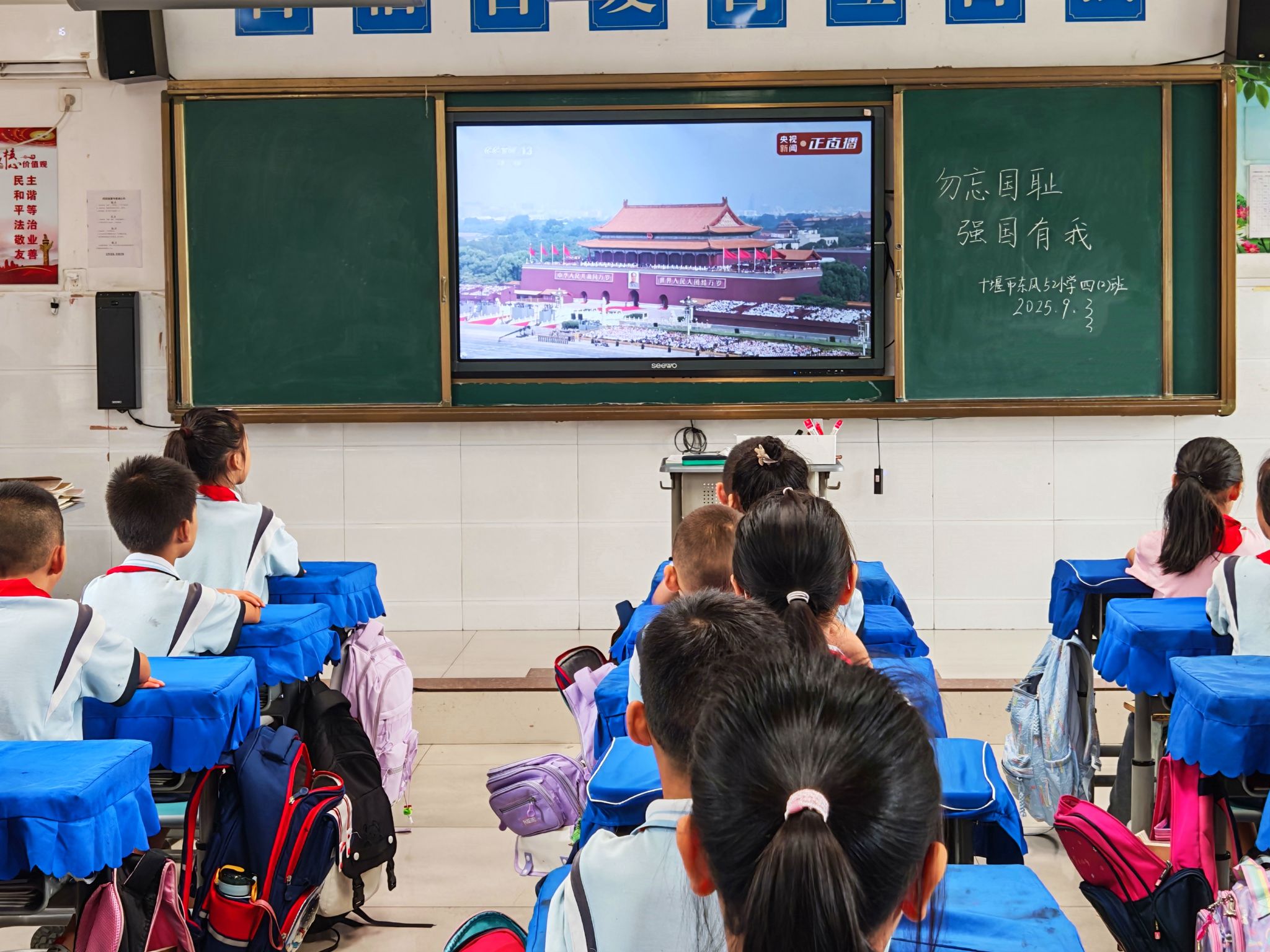 9月3日上午,庄严隆重的纪念中国人民抗日战争暨世界反法西斯战争胜利80周年大会在北京隆重举行。东风52小学精心组织全体师生,以多种形式集中收看大会实况直播,共同回顾那段烽火连天的峥嵘岁月,缅怀革命先烈的丰功伟绩,接受了一次深刻而生动的爱国主义教育。