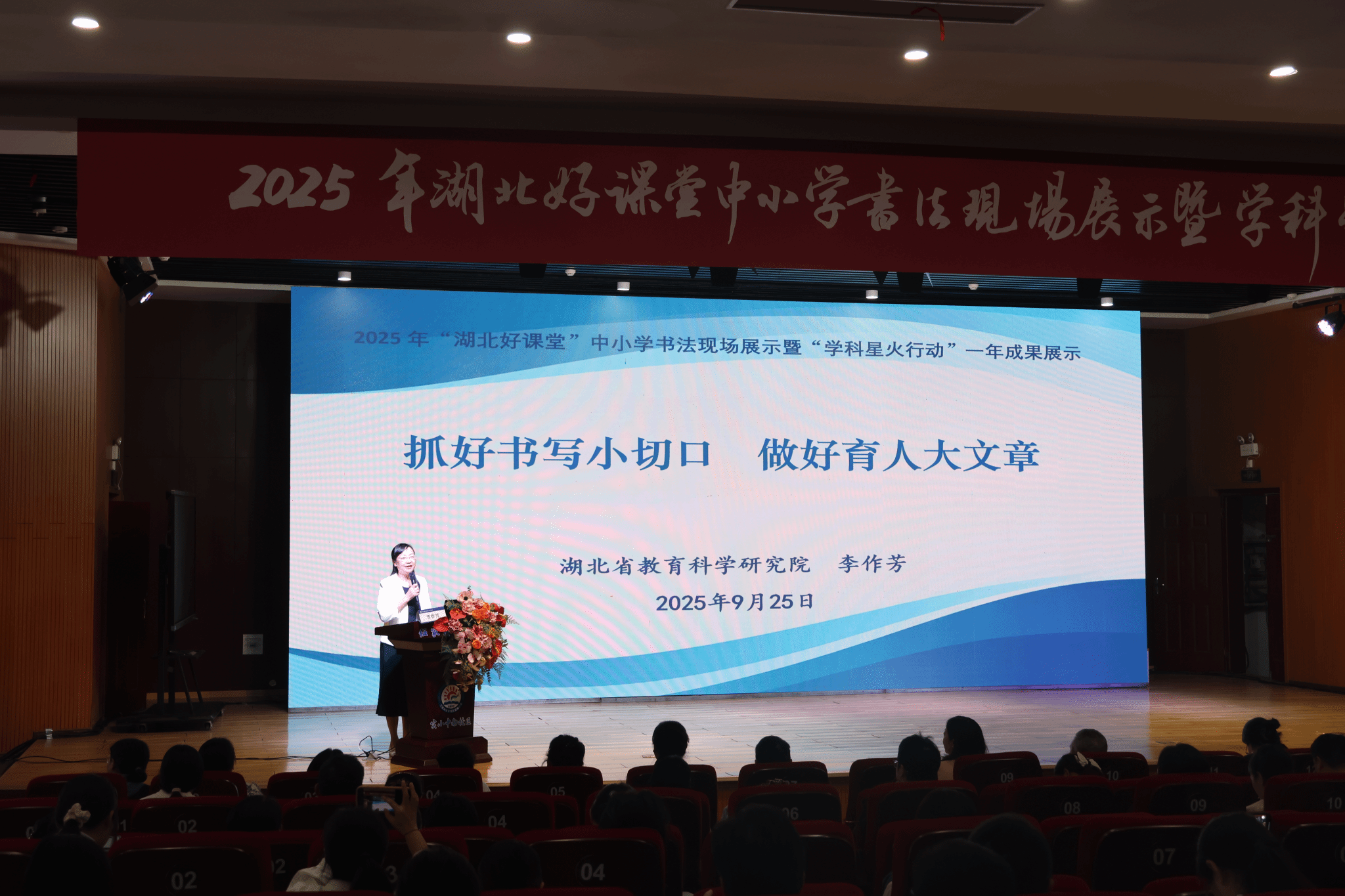 秋兰飘香,翰墨薪传。9月24日至25日,2025年“湖北好课堂”中小学书法现场展示暨学科星火行动成果展示活动在宜昌市伍家岗区实验小学教育集团中南校区成功举办。本次活动由湖北省教育科学研究院主办,汇聚了来自全省各市州的600余名书法教育专家、教研员及一线教师,共襄这场高规格的书法教育盛会。湖北省教科院课程室主任、项目组组长李作芳,宜昌市教科院党总支书记李德强等领导出席活动。