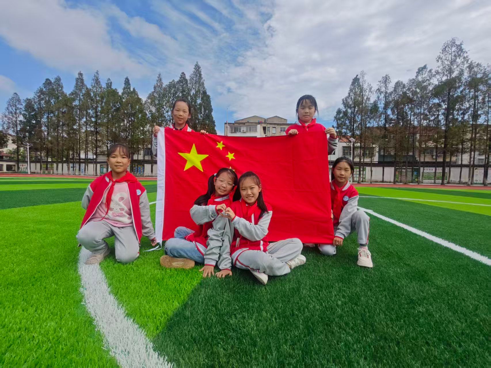 与国旗合影,定格最美“中国红”。“咔嚓!”快门声响起,一张张与国旗的合影将瞬间定格为永恒。同学们或站或蹲,在鲜艳的五星红旗下绽放出最灿烂的笑容。每一张合影都是一份爱国宣言,诉说着吴店镇中心小学学子对祖国的热爱与眷恋。