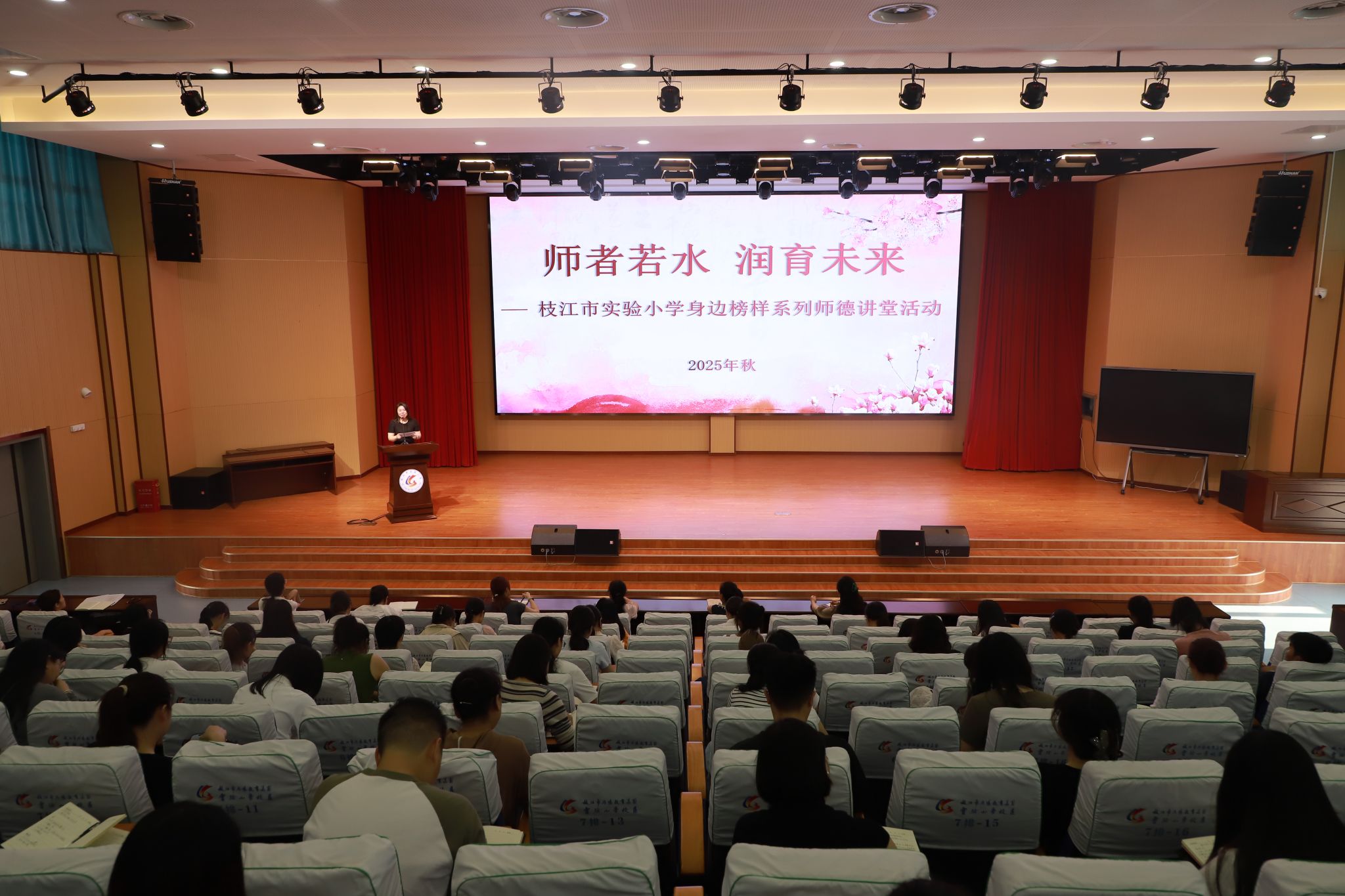 2025年10月10日,枝江市实验小学“师者若水·润育未来”主题师德讲堂活动正式拉开帷幕。该校全体教师带着对教育事业的赤诚与热忱齐聚报告厅内,共同聆听身边榜样的教育故事,感受平凡岗位中的不凡力量。