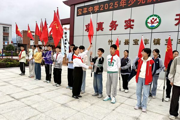 星星火炬,代代相传;青春向党,筑梦起航。10月11日,竹山县宝丰镇宝丰中学校园内队旗飘扬团徽闪亮,洋溢着庄严而热烈的气氛,该校隆重举行了七年级新生少先队建队仪式和新团员纳新仪式。七八年级全体学生及九年级部分学生代表共同见证了这场青春与责任的接力。
