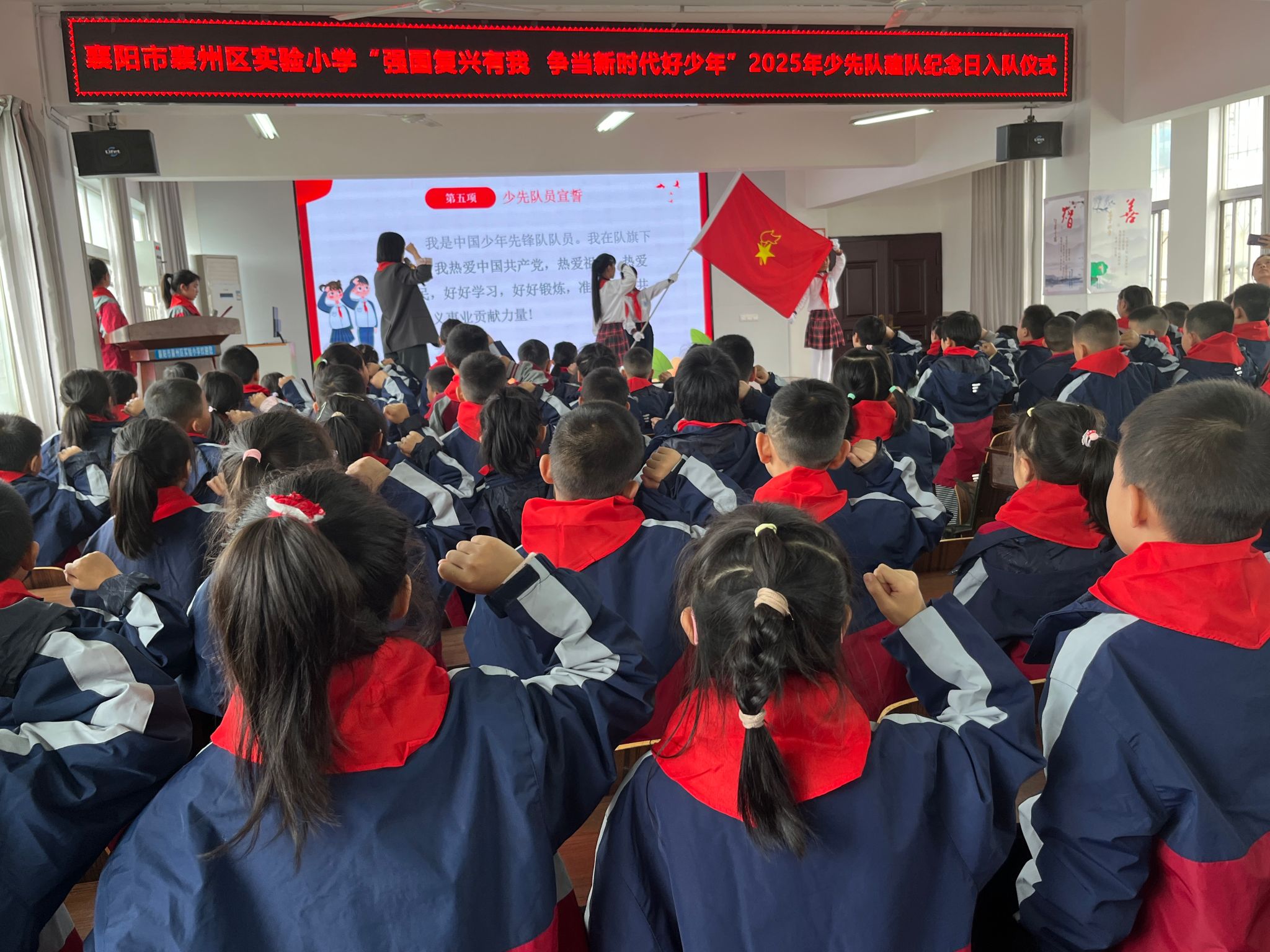 金秋十月,队歌嘹亮。在第76个建队日到来之际,襄阳市襄州区实验小学举行了一场庄严而温馨的入队仪式,二年级五个中队的151名同学在今天正式加入了中国少年先锋队,成为了这个光荣组织的新成员。在这样一个具有特殊意义的日子里,学校为二年级五个中队的151名同学隆重举行了“强国复兴有我 争当新时代好少年”主题建队日和入队活动。