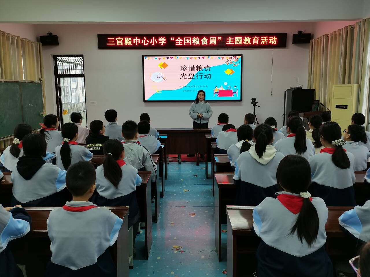 活动中,中队辅导员曹鋆老师结合精心制作的PPT,向队员们生动地讲解了世界粮食日的由来、当前全球粮食安全形势以及我国为保障粮食安全所做的努力。曹老师通过“谁知盘中餐,粒粒皆辛苦”的古诗,引导队员们深刻体会粮食的来之不易,教育大家要从点滴做起,自觉养成爱粮节粮的好习惯。
