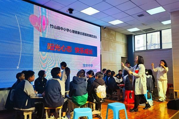 10月15日,竹山县宝丰镇宝丰中学特邀十堰市精神卫生中心的专业心理医生团队走进校园,为学生们开展了一场以“阳光心态,快乐成长”为主题的心理健康团体辅导活动,以专业力量为学生减压赋能,呵护学生身心健康发展。