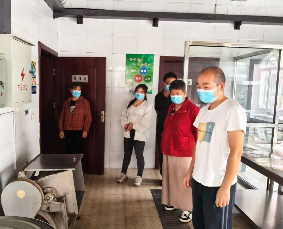 活动伊始,在屈园长的带领下,“两会”代表们深入幼儿园厨房核心区域,开启“全流程”安全督查。从食材储存间的分类分区管理、供应商资质文件与进货查验台账的细致核查,到烹饪间的“明厨亮灶”实时监控、洗消间的餐具消毒规范流程,再到备餐间的温度控制与食品留样管理,每一个关键环节都接受严格检视。代表们仔细查看食材溯源记录,询问从业人员健康管理细节,对幼儿园“从源头到餐桌”的精细化管控给予充分肯定。