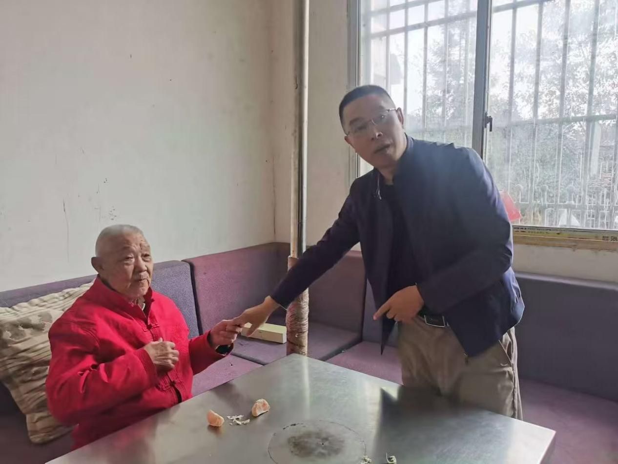 慰问组每到一户,都与退休教师们促膝长谈,关切询问他们的生活起居和健康状况,叮嘱他们要保重身体,保持好乐观良好的心态。同时,慰问组还向退休教师们介绍了学校近年来的办学情况和取得的成绩,感谢他们对学校发展的关注和付出,希望他们一如既往地关心、支持学校的工作,为学校发展献计献策。退休教师们对学校的关心和慰问表示感谢,纷纷表示,虽然已经离开了工作岗位,但心始终与学校同在,将持续关注学校的发展。其中,今年九十七岁高龄的张世银老师虽已退休多年,但精神矍铄,思维清晰,时常关注学校动态。作为曾经参加过抗美援朝战争的老兵,他握着牟桂林校长的手讲述过往的经历,并对学校没有忘记老同志、党政工领导亲自登门祝寿,倍感温暖和幸福。