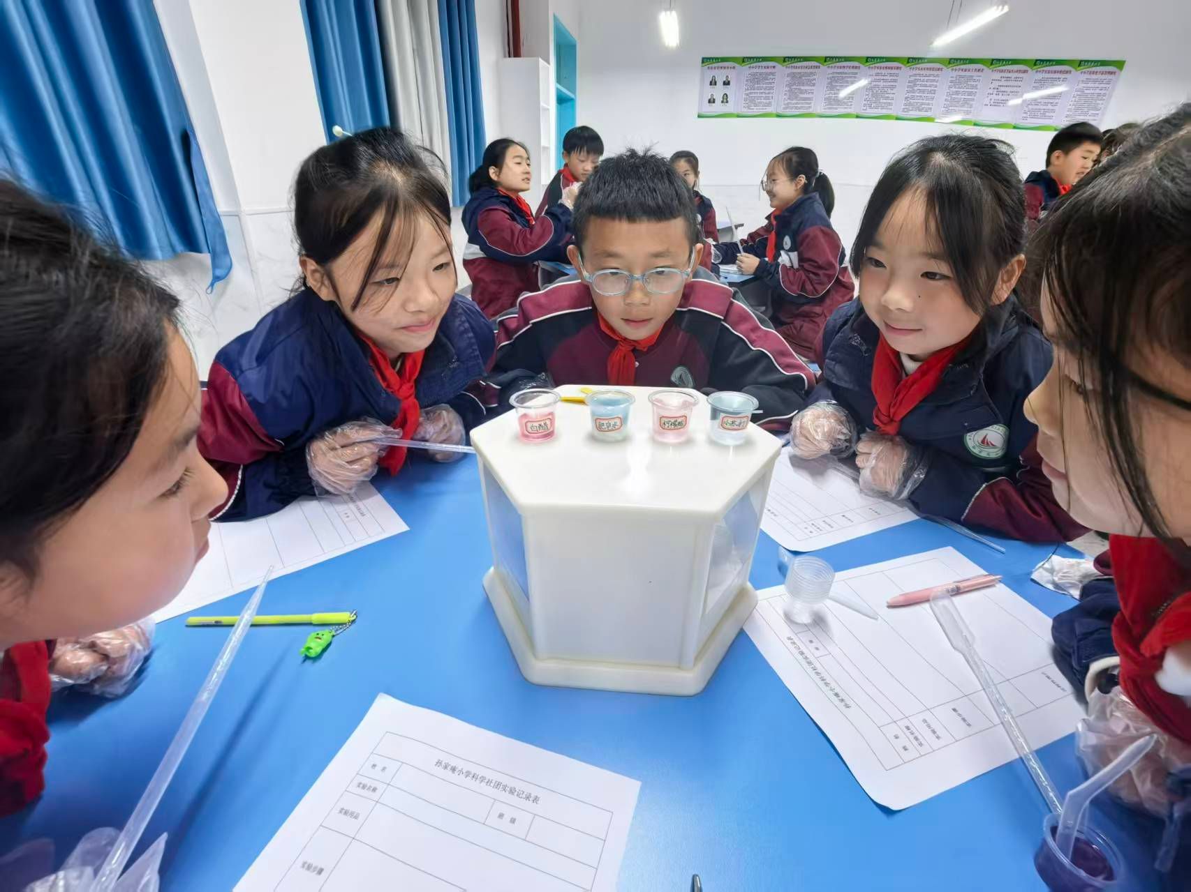 为深入贯彻落实国家“双减”政策及新时代教育评价改革要求,践行“五育并举”全面发展的育人理念,孙家痷小学精心策划的“启航”科学社团于10月20日下午正式开课。首堂实验课——“探秘厨房之神奇的酸碱指示剂”,带领同学们步入了一个变幻莫测的化学世界,亲身体验了科学探究的无穷乐趣。