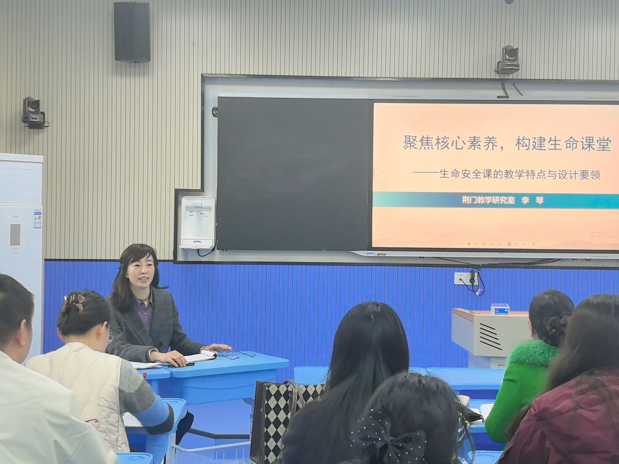课例展示结束后,荆门市教研室专家李琴开展《聚焦核心素养 构建生命课堂》专题讲座。她充分肯定了三节展示课的亮点,同时从教学目标定位、内容选取逻辑、活动设计有效性、评价方式多元化等方面,系统解析生命安全课的教学特质,并结合实际案例分享课程设计核心要领,为参会教师提供专业指导。