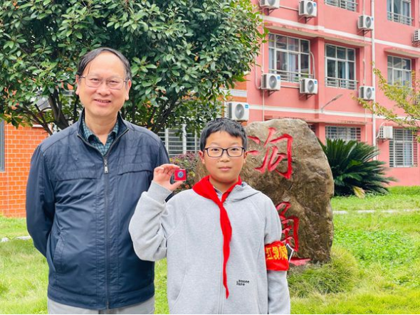 课堂上,学生们热情高涨,互动氛围热烈。活动尾声,有幸运学生还获得卢教授亲自授予的中科院院徽,这份特殊的纪念让孩子们对科学的向往更添一份庄重与期待。