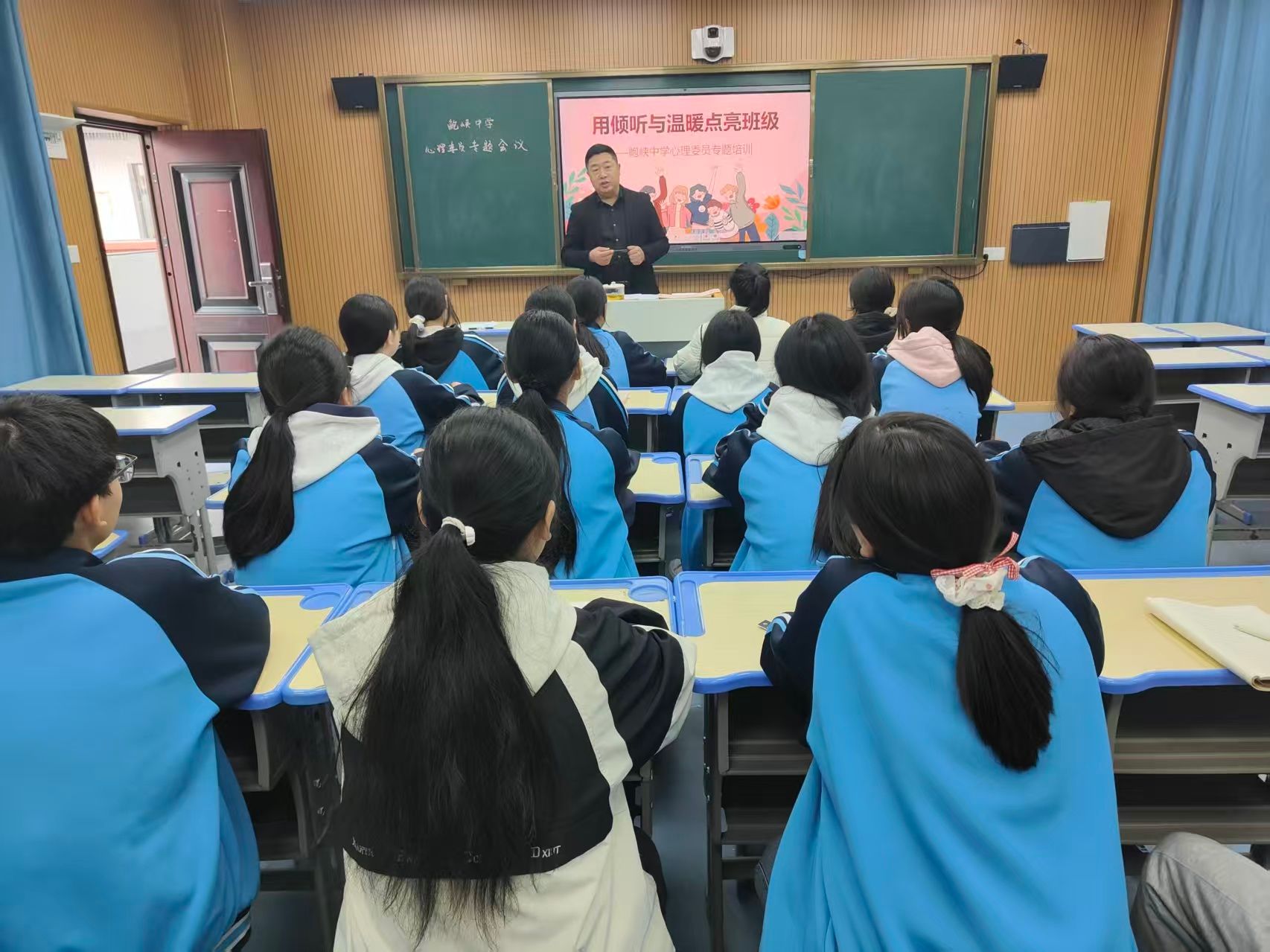 本次培训由学校心理健康教师王帅主讲,以“用倾听与温暖点亮班级”为主题,重点围绕“观察、倾听、求助”三大核心技能展开。培训明确了心理委员的核心定位是“雷达”而非“消防员”,重在观察与发现,而非直接处理危机。同学们听讲十分专注,不时低头认真记录要点,眼中闪烁着既严肃又期待的光芒,展现出对新角色的深刻认同和责任担当。