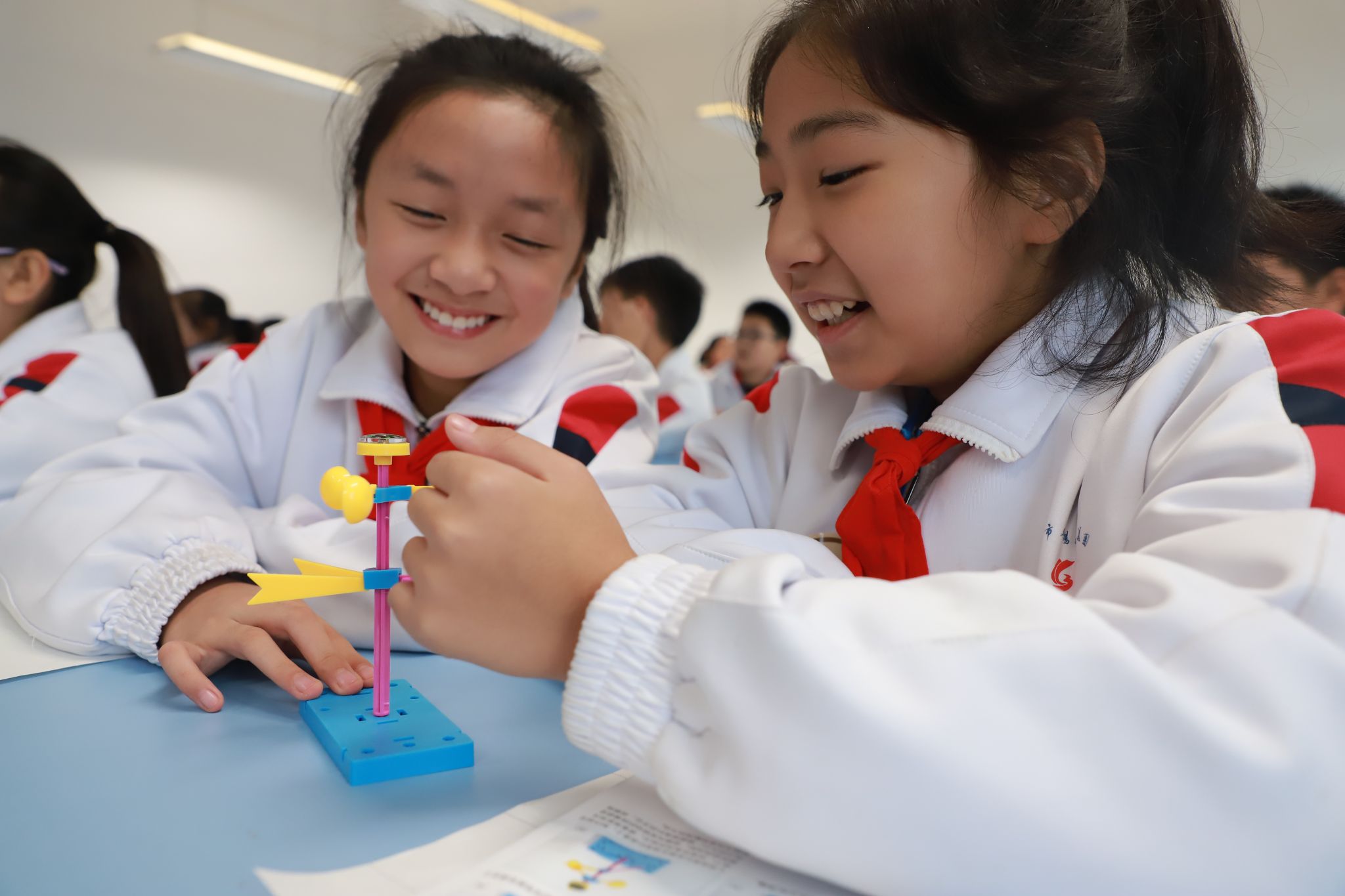 最令现场气氛高涨的是动手实践环节。在直播课程的专业引导与学校科学教师的辅助下,学生们利用课前配发的科普教育资源包,亲手制作了“风力风向标”。孩子们兴致勃勃地举着作品,在教室中测试风向、讨论原理,俨然一群专注的“小小航海家”。五(2)班学生曹明赫兴奋地说:“原来古人就是靠这样的工具辨别风向、扬帆远航,太神奇了!”