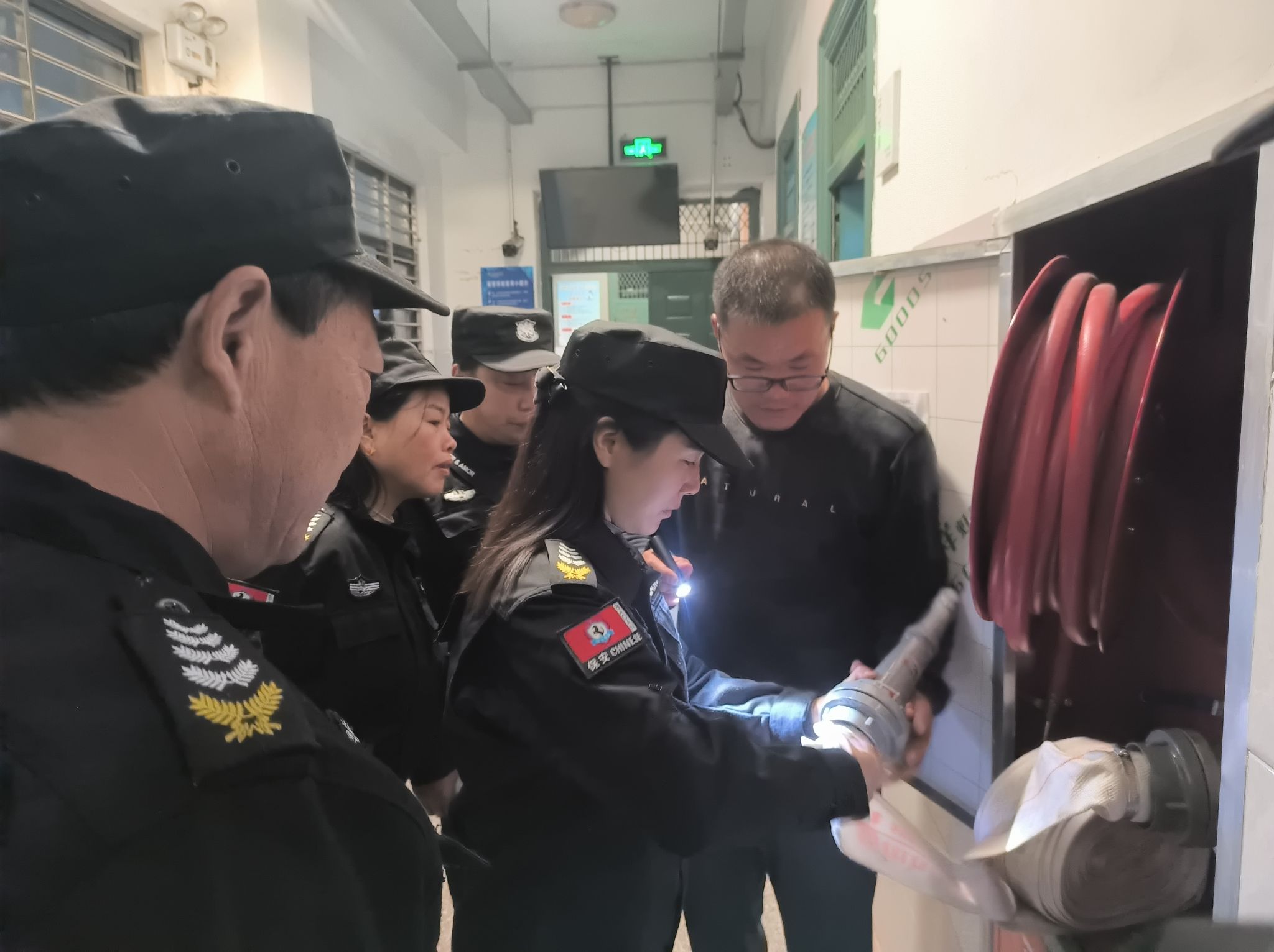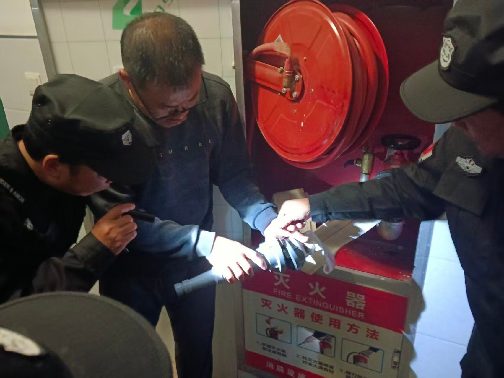 紧接着,曹卫华向大家介绍了消防栓的使用方法:发生火灾时打开消防栓箱,若火势比较小时可以拉出黑色水管,拿水枪头对准火源后打开开关,看指示开、关水阀,最后把水枪头的开关,水带一端连接水源,一端连接水栓,手握水枪头及水带,对准火源灭火。示范后,让宿管员们轮流操作,副校长李智对此次培训实操非常重视,在现场指挥并检查,直至所有人都掌握了正确的操作要领和方法为止。