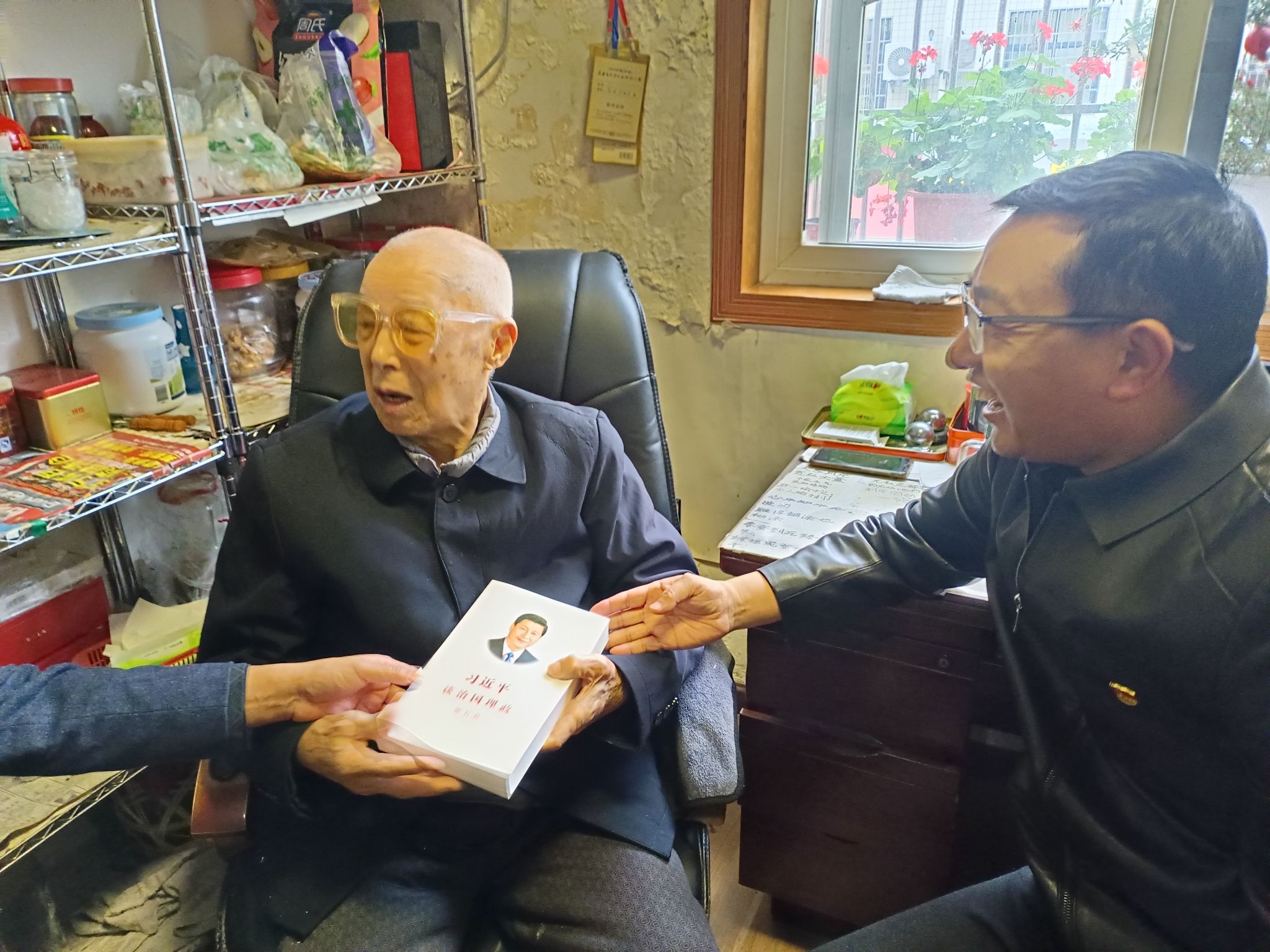 据悉,99岁高龄的柯品钦老人是一名离休老党员、老教师,他始终以党员的标准从严要求自己,在三十余年的工作经历中,为房县二中的发展做出了巨大贡献。退休后,柯品钦依然心系家乡建设发展,在新冠肺炎疫情期间,老人主动向房县慈善会捐赠一万元现金,用来支持房县疫情防控工作,他用实际行动诠释一个共产党员坚定的理想信念和初心使命。94岁高龄的程学栋老人,是房县二中退休老校长、老党员,任职期间,他心系学校发展与学子成长,在师资建设、设施完善、育人质量提升等方面倾尽全力,为学校的发展奠定了坚实的基础。慰问活动中,尤永清与两位老人亲切握手、促膝长谈,细致询问他们的生活起居与身体状况,由衷感谢老人们多年来为基层教育事业做出的贡献,离岗不离党、退休不褪色,积极发挥余热助力学校与家乡发展,随后为老人送上了《习近平谈治国理政》第五卷读本。