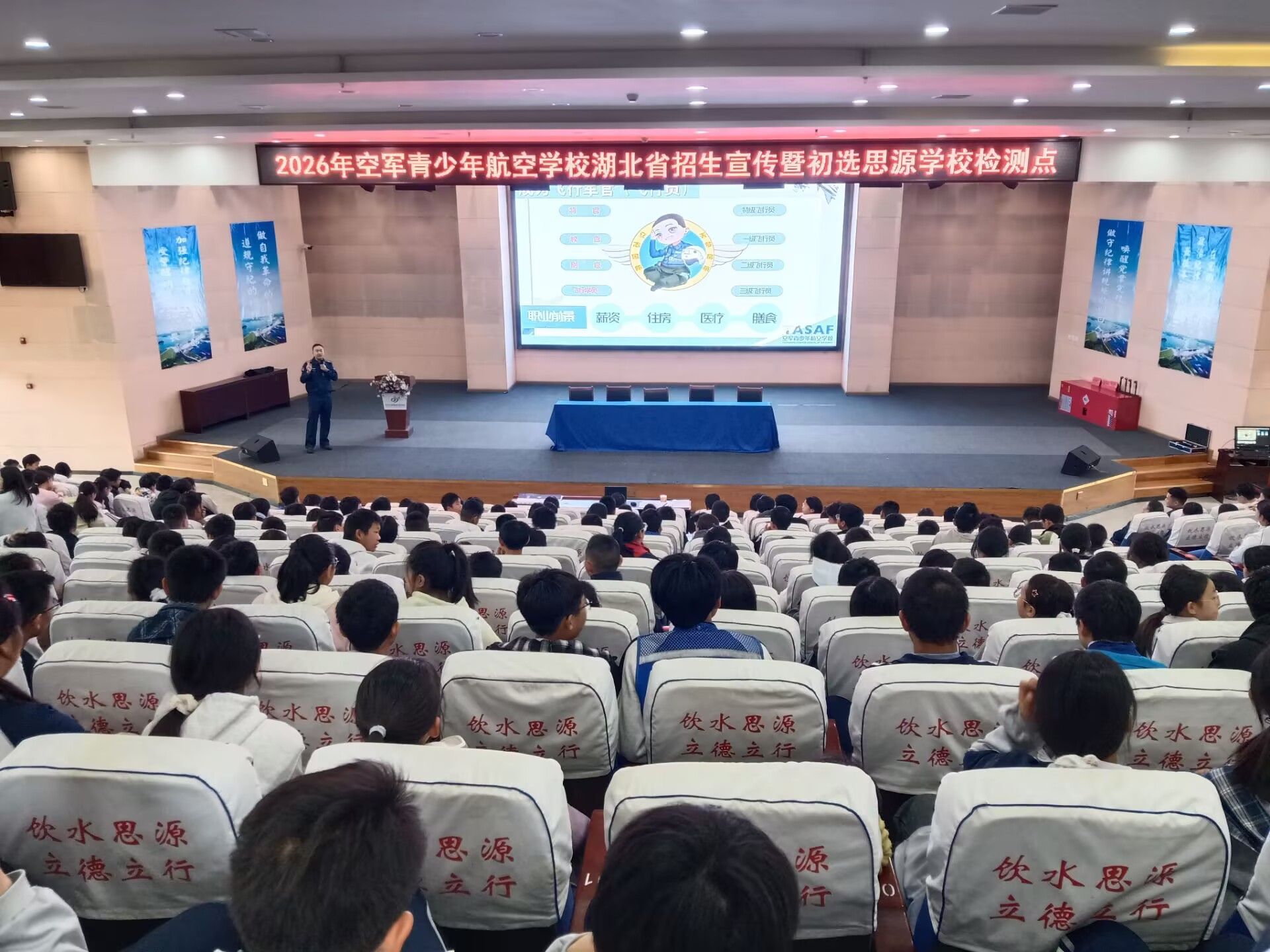 10月30日上午,2026年空军青少年航空学校走进思源实验学校开展招生宣传和初选工作,丹江口市教育局、考试中心和思源实验学校高度重视这次活动,思源实验学校组织安排了七八九年级航空班及其他班优秀学生600多人参加活动。