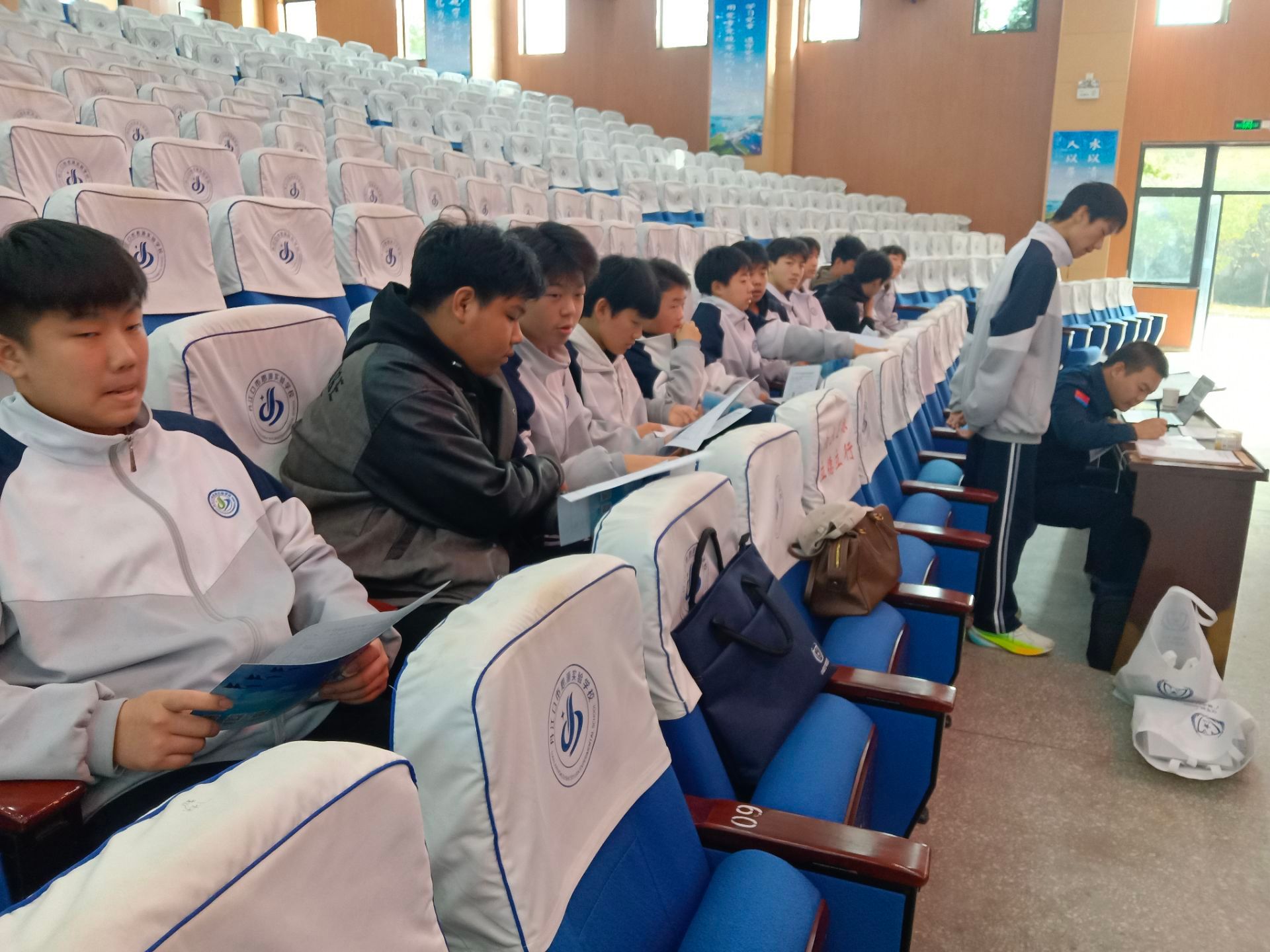 空军青少年航空学校工作人员给现场师生发放“空军青少年航空学校2026年招生简章”,“国防航空”宣传片在大屏幕上精彩播放,由此燃起了学生们的爱国激情和当一名优秀飞行员的梦想。