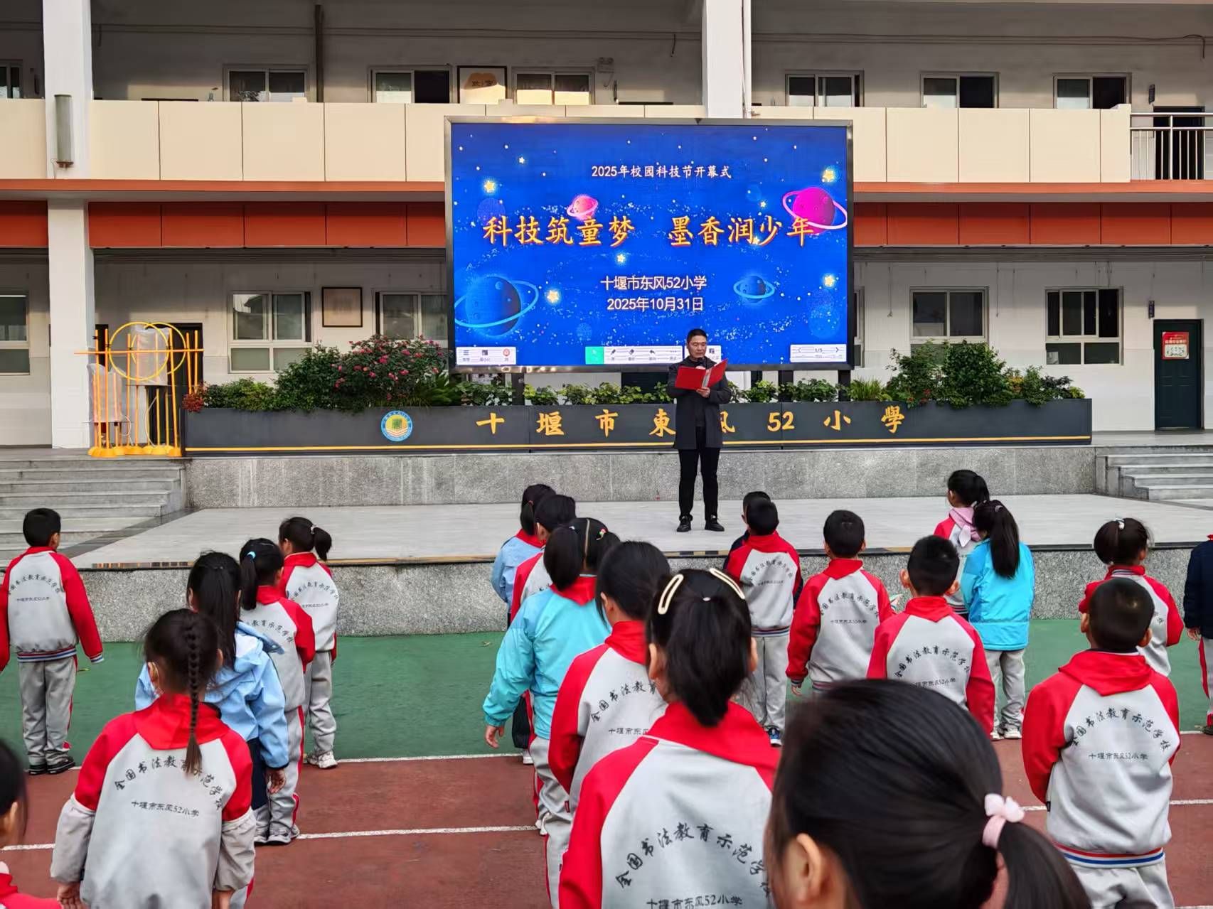 10月31日上午,以“科技筑童梦,墨香润少年”为主题的十堰市东风52小学2025年校园科技节在学校操场拉开帷幕。全校师生共同见证了这场融合科学探索与人文素养的校园盛事启动。