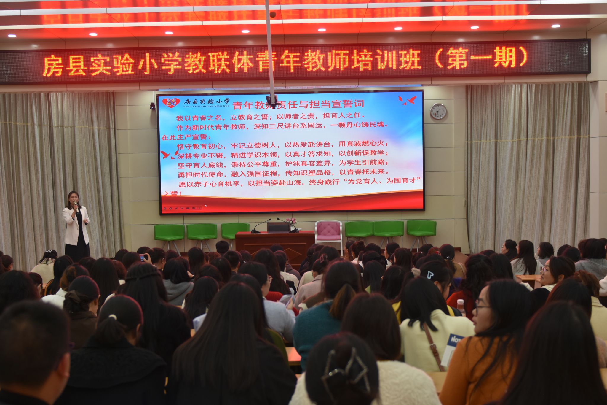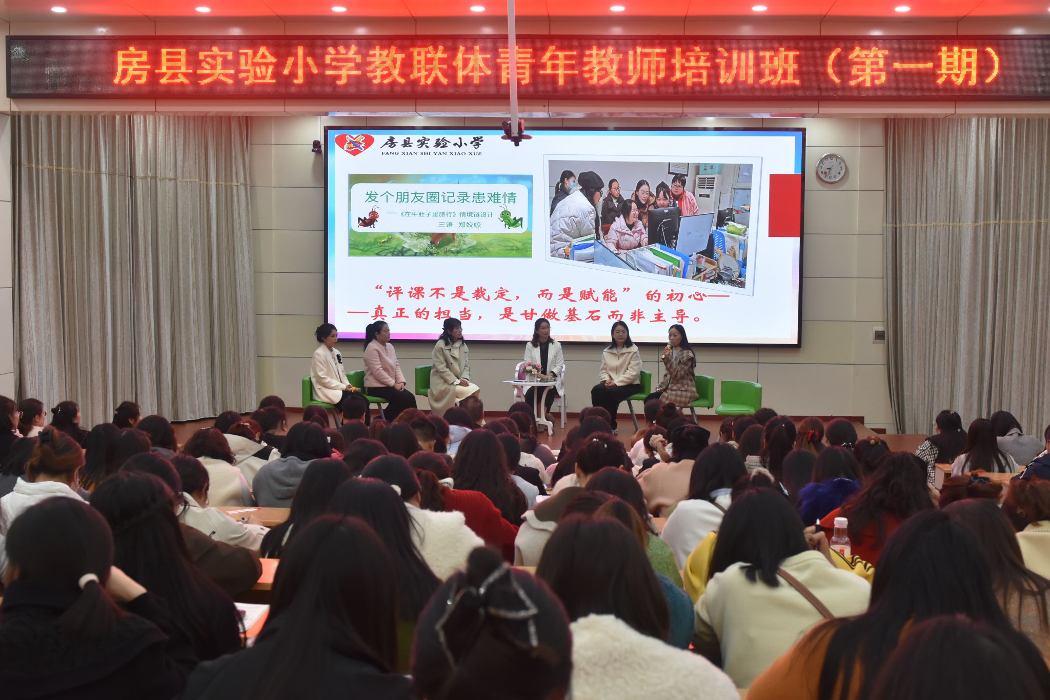 为助力青年教师快速成长,打造高素质教师队伍,11月3日晚,房县实验小学教联体青年教师培训班(第一期)开班。学校中层干部代表、年级组长代表、学科组长代表、班主任代表、副班主任代表分别结合自身岗位实践,从敬业精神、养成教育、应急管理、教研赋能等多维度展开深度分享,为青年教师送上“成长能量包”。教联体两校区130余名青年教师参会,现场互动热烈,反响积极。