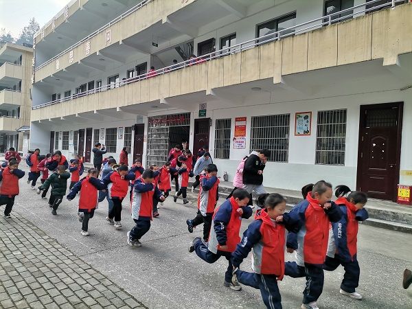 演练前,学校政教处通过案例讲解、动作示范等方式,明确了疏散路线、避险要点及各班撤离要求。上午9时10分整,校园伴随一声“呜、呜、呜……”警报响起,消防应急疏散演练正式开始,在班主任及安全员的的指挥下,一至九年级284名学生迅速用湿毛巾捂口鼻、弯腰低姿贴墙,手扶楼梯栏杆,紧张有序地一个接着一个,按预定路线、快速有序从教室向操场疏散,整个过程有条不紊、安全顺利,仅用时90秒,达到了预期效果。