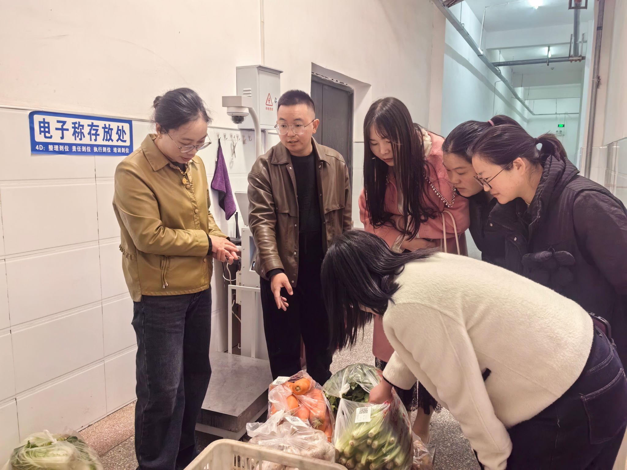 活动伊始,家长代表们在分管后勤校长的带领下,先后走进食堂操作间、消毒间、储物间等核心区域。在储物间,整齐码放的粮油米面、分类标识的蔬菜水果,以及严格的温湿度控制设备,让家长们直观感受到食材储存的规范性。操作间内,工作人员身着统一工装,按照标准化流程清洗、切配、烹饪,全程公开透明。从食材采购的索证索票到餐具消毒的台账记录,从菜品留样的规范操作到营养搭配的科学依据,后勤校长逐一细致讲解,家长们不时驻足询问,对学校膳食管理的严谨性给予高度评价。随后的座谈交流环节,学校与家长代表围绕膳食改善建议、营养均衡优化等话题深入沟通,将“监督”转化为“共建”,用家校协同的力量为孩子们的健康成长保驾护航。