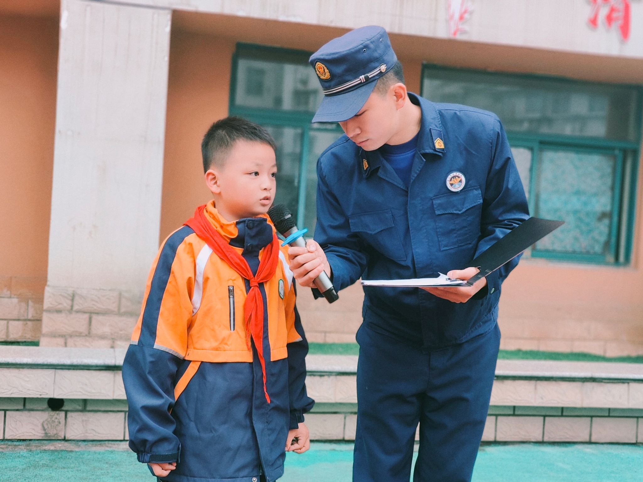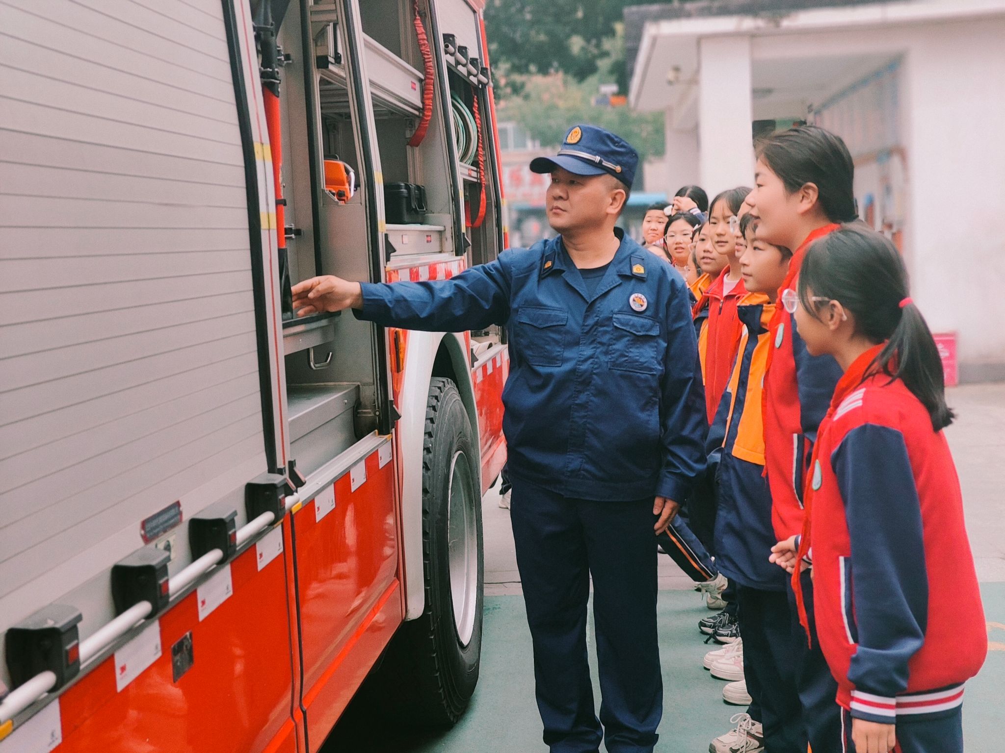 演练结束后,茅箭区消防救援大队的消防官兵开展了生动的消防安全知识讲座,包括用火用电安全、正确使用消防器材,以及逃生技巧等消防知识。现场互动热烈,还抽取部分学生进行消防知识问答,使同学们进一步掌握消防知识。同学们还近距离接触消防车辆,聆听消防员们详细的讲解,了解消防工作的重要和艰辛,这一实地体验让学生们对消防安全有了更深刻的认识。最后,政教主任柯丽倡导同学们争当消防宣传员,用小小力量带动家人共同守护安全。