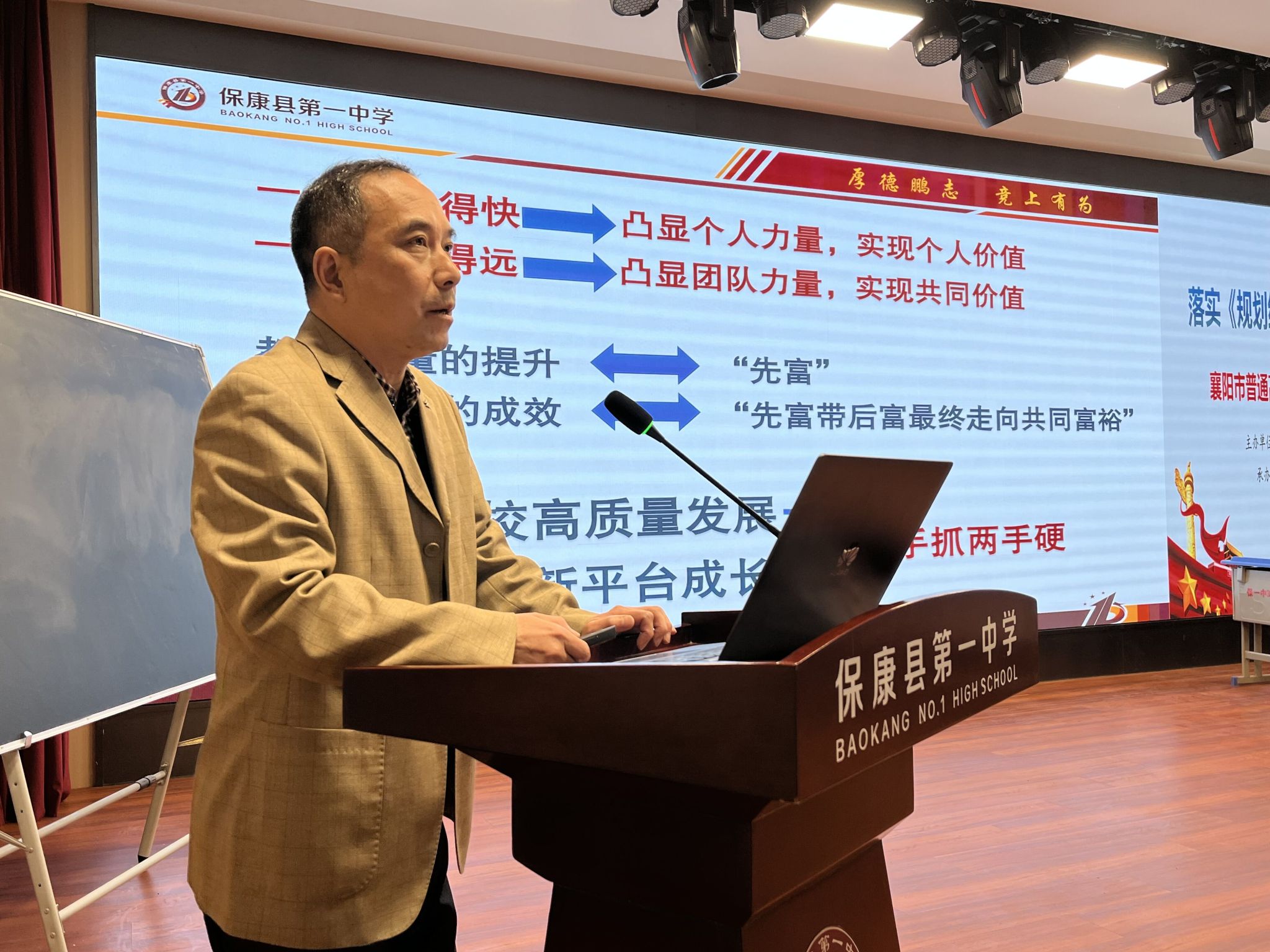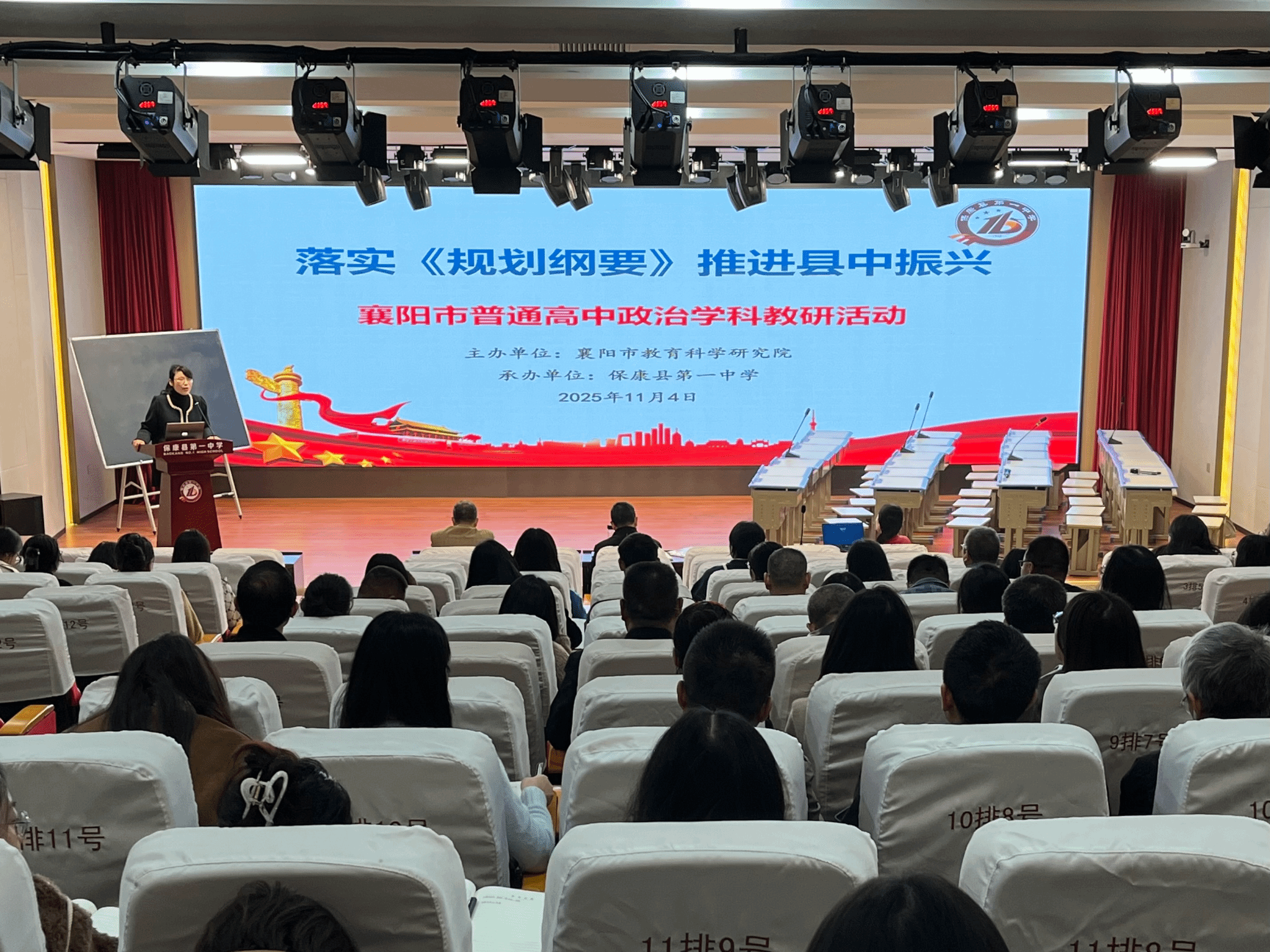 为深入贯彻《教育强国建设规划纲要(2024—2035年)》精神,精准对接新高考评价体系,破解新课改下高中政治教学的创新难题,11月4日,保康一中成功承办了襄阳市高中政治教研活动。襄阳市教科院高中政治教研员姜利梅亲临指导。全市70余名高中政治教师参加活动。