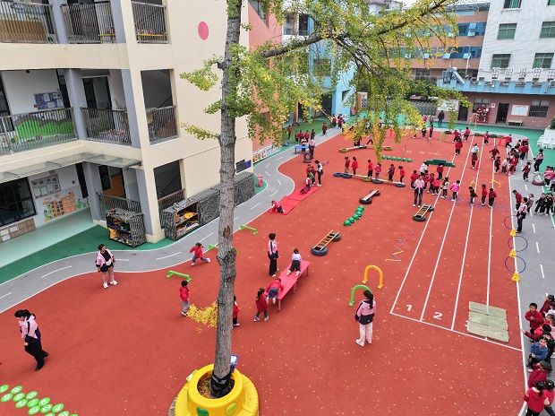 随后,与会人员移步户外,现场观摩了幼儿们的区域活动和游戏活动。孩子们在自主、愉悦的环境中,或进行合作建构,或开展角色扮演,充分展现了孩子们在优质教育环境下的快乐成长状态,也反映了幼儿园在促进幼儿体能发展、社会性发展和个性培养方面的扎实成效。