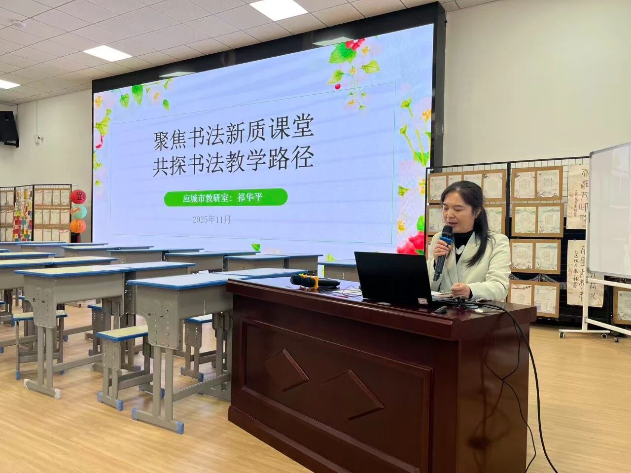该市教研室有关负责人围绕“聚焦书法新质课堂,共探书法教学路径”主题对该市书法教学工作进行指导与建议,分析当前该市小学书法教学的现状以及书法教学的重要性,提出了有针对性的改进措施和发展方向,号召全体书法教师以文化为根、欣赏为门、思维为径、实践为舟,深耕书法教学领域,不断提升教学质量,将传统文化的种子播撒在学生的心田上。