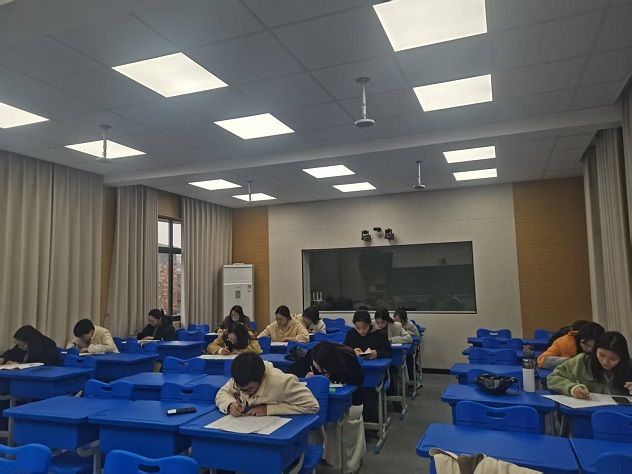 考场上,青年教师们严格遵守考试纪律,神情专注、伏案疾书,将专业知识与教学积累凝注于笔端。标准化的考场布置、规范的考试流程,既体现了测试的严肃性与专业性,也为青年教师搭建了以考促学、以考促教的成长平台。