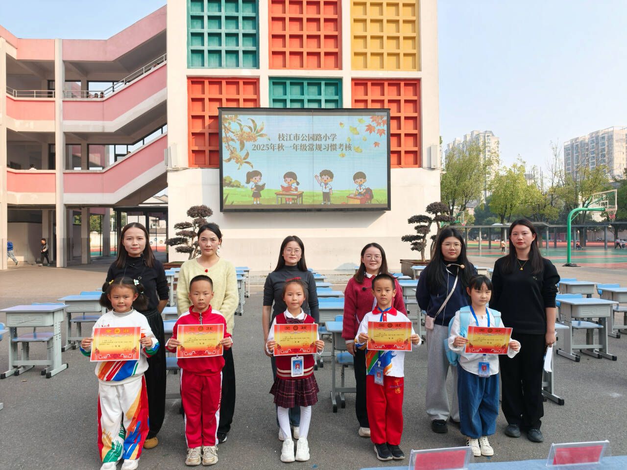 秋阳和煦,雏鹰展翅。为检验一年级新生入学以来的行为习惯养成成果,帮助孩子们更好地适应小学生活,2025年11月6日,枝江市公园路小学成功举办了以“好习惯,乐成长”为主题的一年级学生常规习惯考核活动。学校班子成员、一年级全体师生共同参与了这场别开生面的“新生阅兵式”。