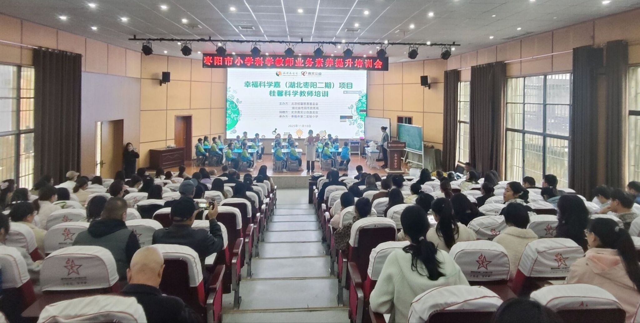 为深入推进小学科学教育教学改革,全面提升科学教师的专业素养和教学实践能力,11月10日,由北京桂馨慈善基金会、枣阳市教育局联合主办的小学科学教师业务素养提升培训会在枣阳市第二实验小学举行。本次培训是“幸福科学嘉”(湖北枣阳二期)项目的重要实施环节。