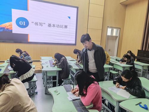 书写基本功竞赛率先启幕。小学部阶梯教室中,教师们执笔凝神,粉笔字工整清劲,硬笔字俊逸流畅。一撇一捺间展现的不仅是书写规范,更是教师对教育事业的敬畏与专注。