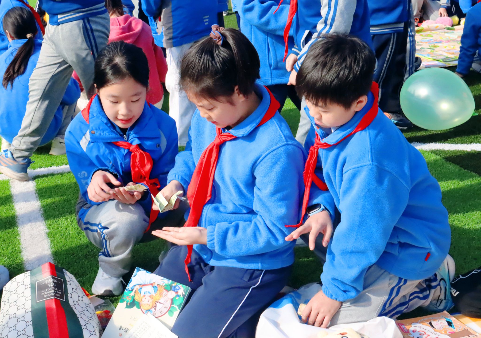 操场上的欢笑声、叫卖声、讨价还价声不绝于耳,吸引了众多老师前去“淘宝”,小老板们遇到老师这样的“大主顾”纷纷上前热情推销,不少老师满载而归。“这不仅是一个微型的书市,更是一堂生动的社会实践课。”淘到8本书的刘校长笑容满面地表示,“孩子们在真实情境中锻炼了表达与沟通能力”。