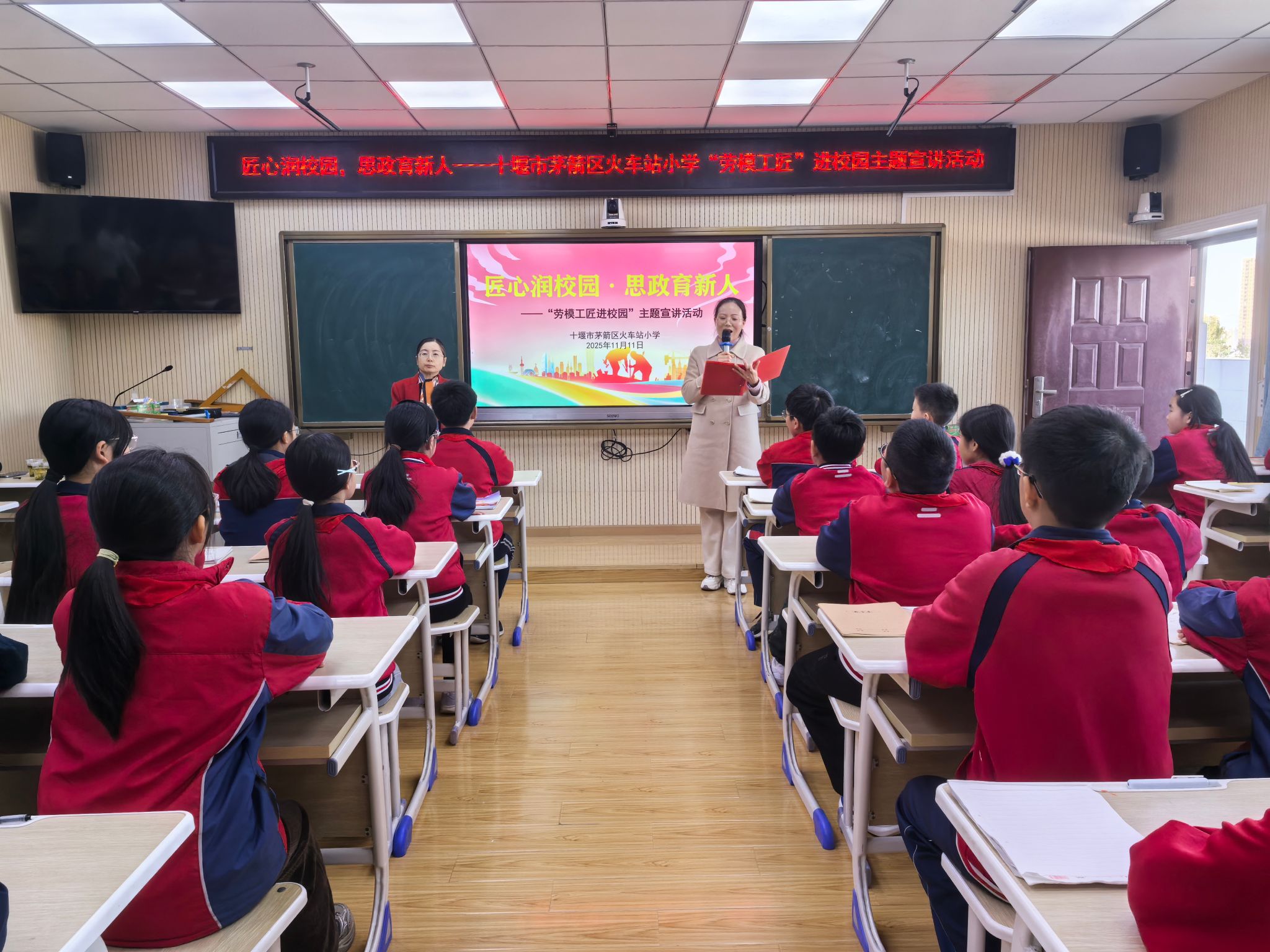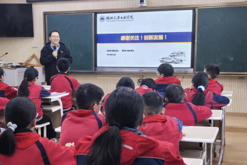 一颗匠心,如何浸润青青校园?一股精神,怎样引领时代新人?2025年11月11日下午,一场别开生面的劳模宣讲活动在火车站小学精彩上演。湖北汽车工业学院陈宇峰、邓召文教授,不仅是学术领域的佼佼者,更是一位荣获“劳模”称号的育人楷模。他们带着对智能汽车事业的执着与热爱,以“匠心润校园,思政育新人”为主题,为孩子们带来了一堂融合了前沿科技、劳动精神和家国情怀的“大思政课”。