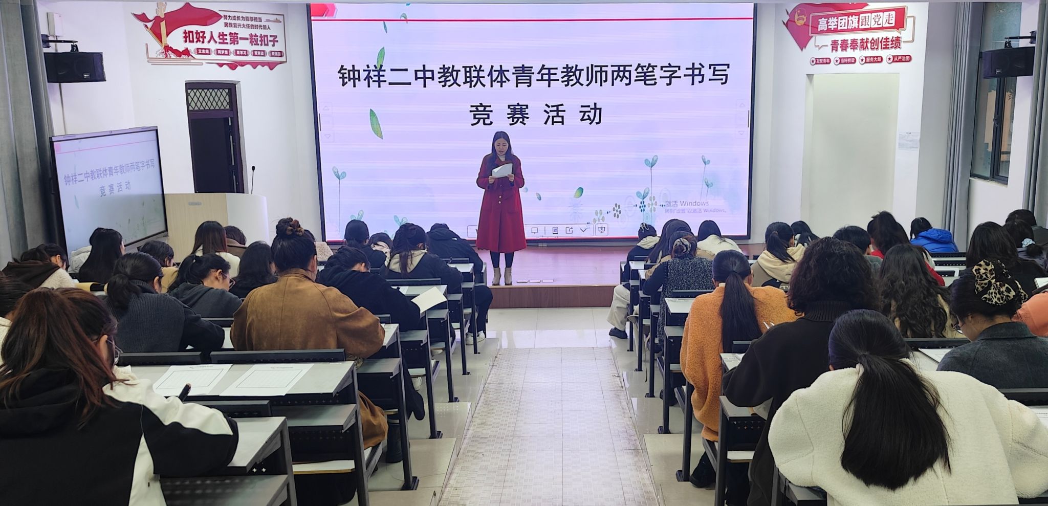 为夯实青年教师教学基本功,深入践行“慧善育人”教育理念,近日,钟祥市第二中学教联体在学校阶梯教室成功举办青年教师两笔字书写竞赛。全体青年教师齐聚一堂,以笔为桥,以墨为媒,在一横一竖间涵养师者匠心,在一撇一捺中诠释“慧心启智,善言润心”的教育追求。