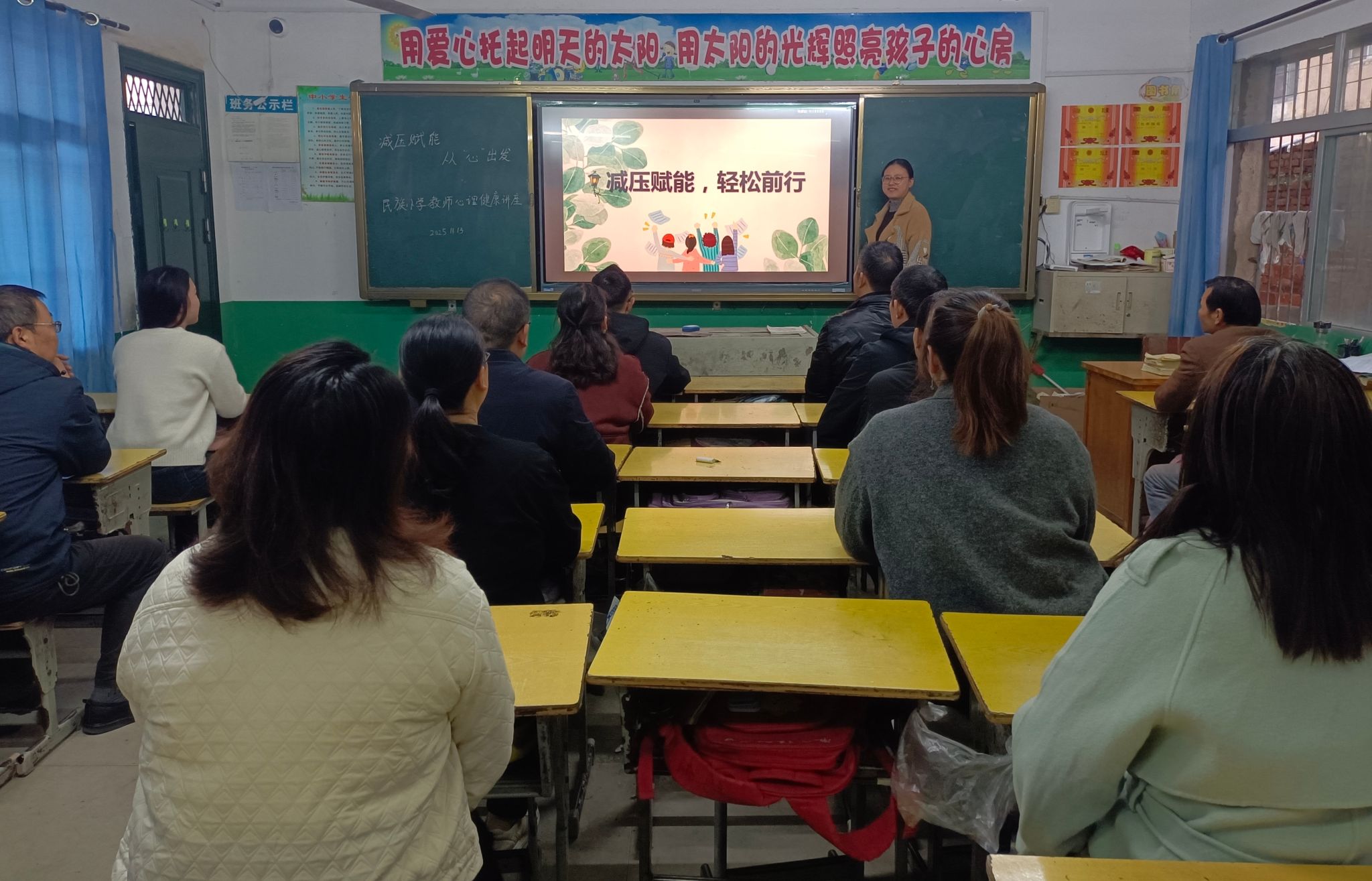 为了缓解教师的工作压力,提升教师的工作效能和幸福感,11月13日下午,襄州区双沟镇民族小学开展了一场充满温暖与关怀的“教师心理减压”活动,为辛勤耕耘的教师们带来了心灵的滋养。
