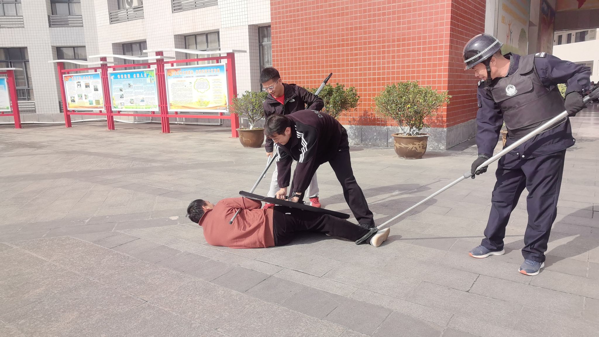 “演练开始!”随着指令下达,一名教师扮演的“歹徒”手持模拟凶器,试图冲破校园大门闯入教学区域。校门口保安第一时间发现险情,立即按下紧急报警装置,同时用防护器械进行初步阻拦,并通过对讲机向“快反队”其他成员通报情况。接到指令后,待命的年轻男教师们迅速携带防护装备赶到现场,与保安队伍形成合围之势并抓住有利时机,果断出击,按照规范动作合力将“歹徒”制服并控制,整个处置过程仅用数分钟,高效完成险情化解。