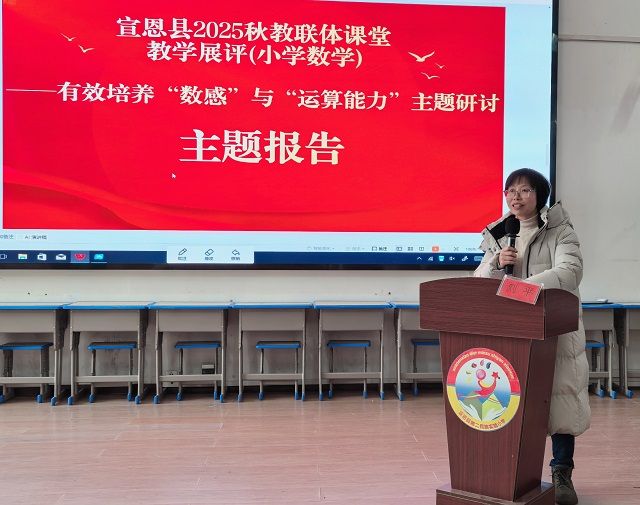 为落实新课标理念、提升小学数学课堂教学质量,11月18日,宣恩县2025年秋教联体小学数学课堂教学展评活动在宣恩县第二民族实验小学阶梯教室成功开展。本次活动以“如何在计算教学中培养学生数感与运算能力”为主题,县教研专家团队及各学校数学教师参与了本次活动。