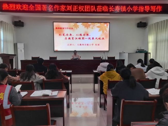 11月18日,钟祥市长寿镇小学与大柴湖实验小学以校际联谊为契机,联合举办专题教育交流活动。活动特邀大柴湖实验小学教师朱丽与全国知名作家刘正权进行专题分享,聚焦教师专业基本功锤炼与学生读写核心能力提升,为两校教师构建了一个互学共进、协同成长的高质量平台。